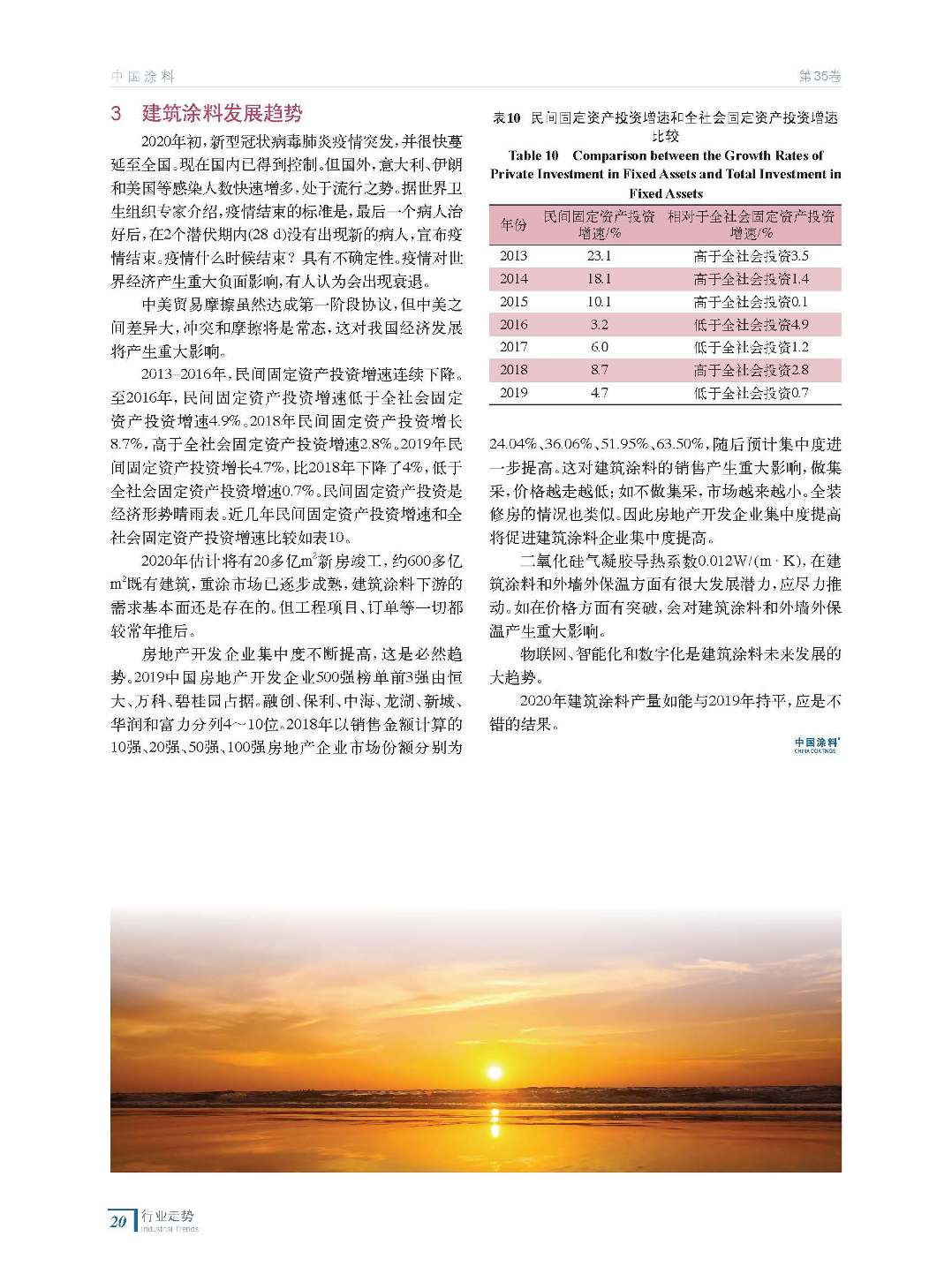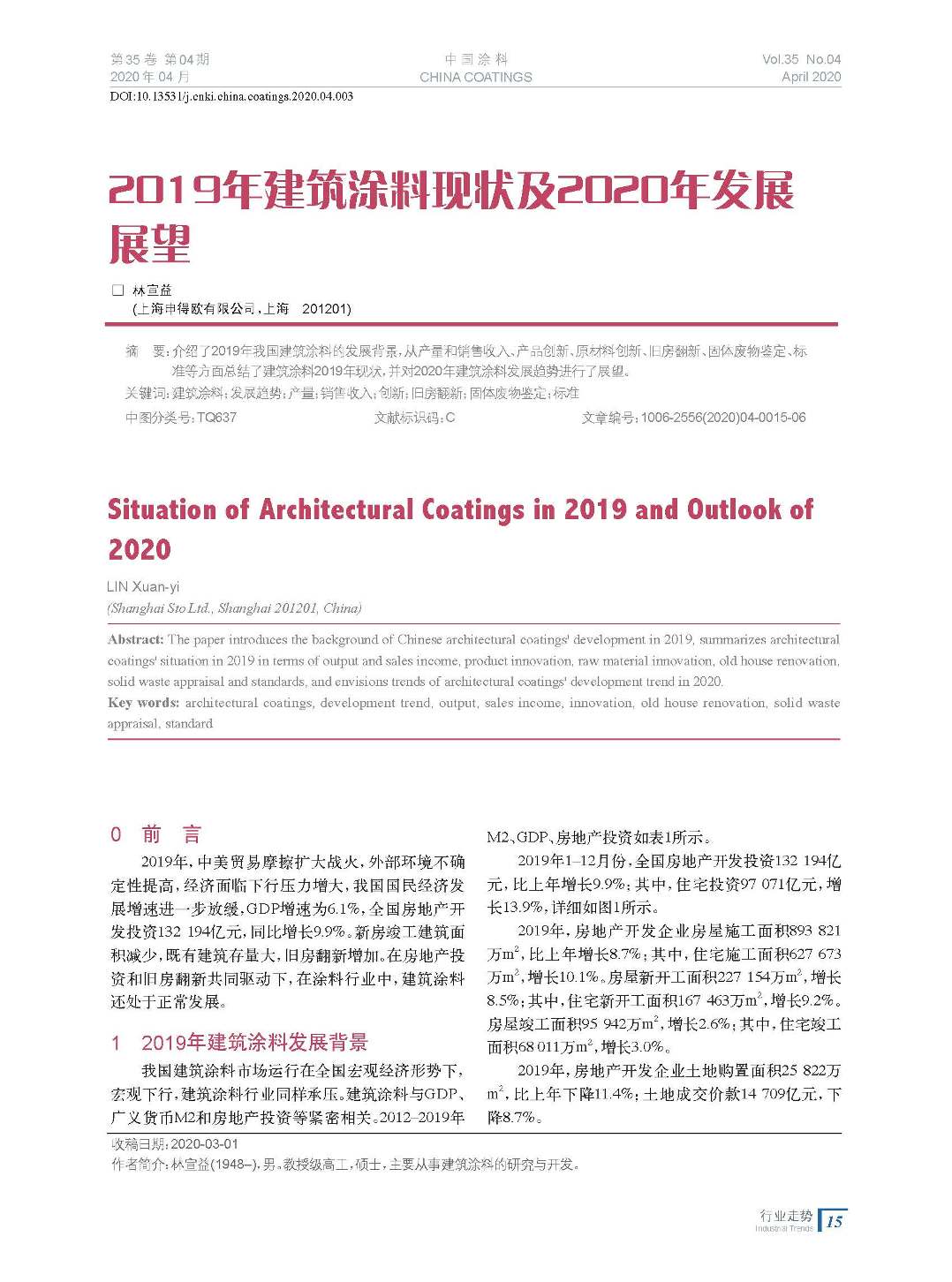 介紹了2019年我國建筑涂料的發展背景,從產量和銷售收入、產品創新、原材料創新、舊房翻新、固體廢物鑒定、標準等方面總結了建筑涂料2019年現狀,并對2020年建筑涂料發展趨勢進行了展望。