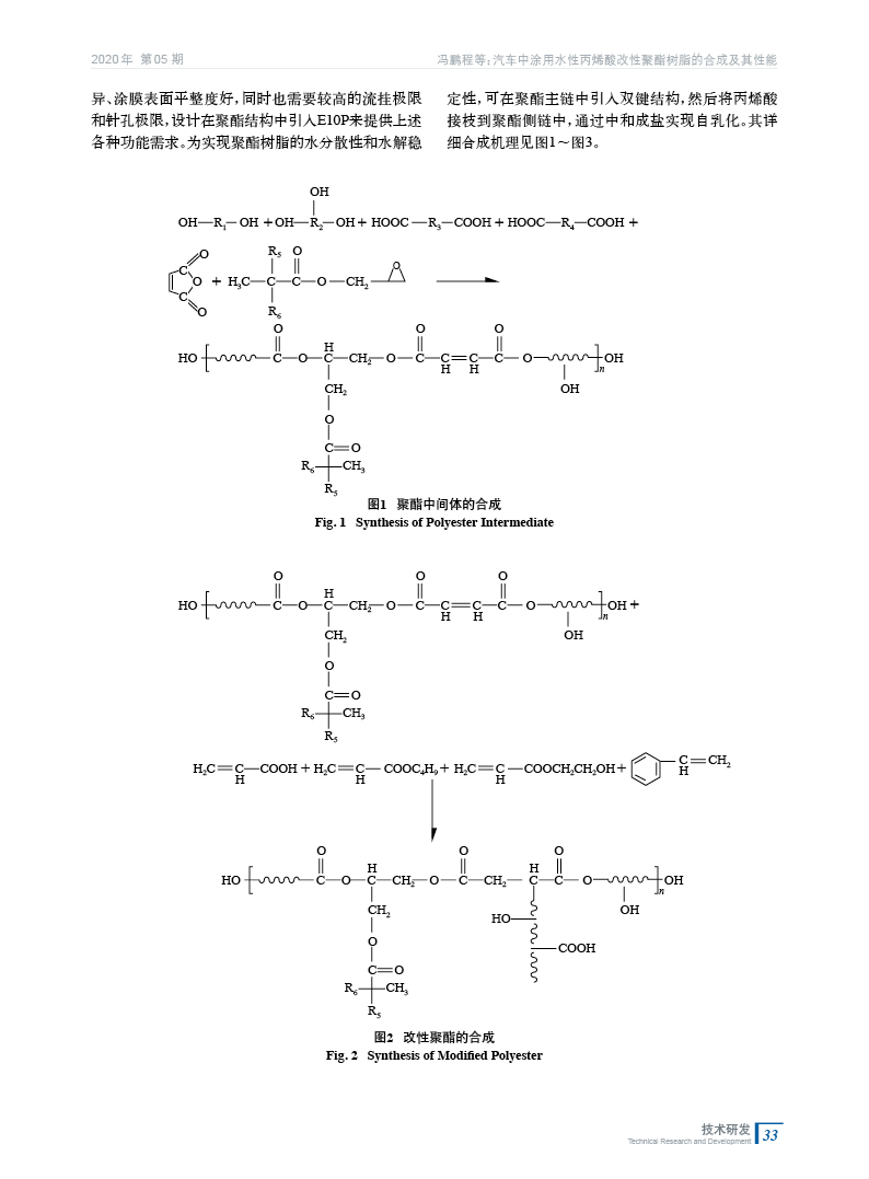 汽車中涂用水性丙烯酸改性聚酯樹脂的合成及其性能