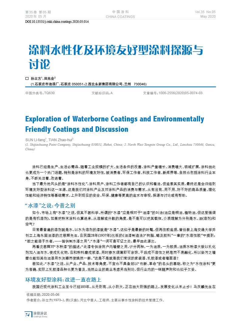 本文系作者@孫立方,田兆會(huì) 授權(quán)中國(guó)涂料網(wǎng)發(fā)表,并經(jīng)中國(guó)涂料網(wǎng)編輯,未經(jīng)允許不得轉(zhuǎn)載,如需轉(zhuǎn)載請(qǐng)聯(lián)系chinacoatingnet@vip.163.com