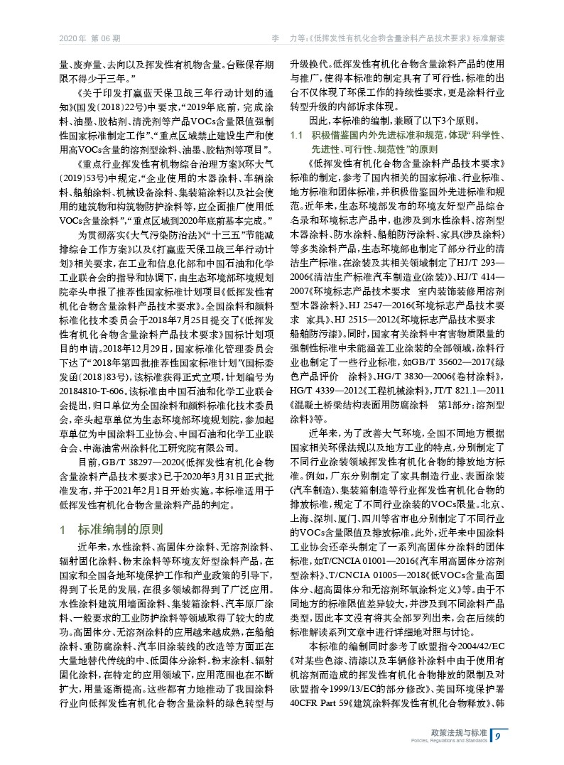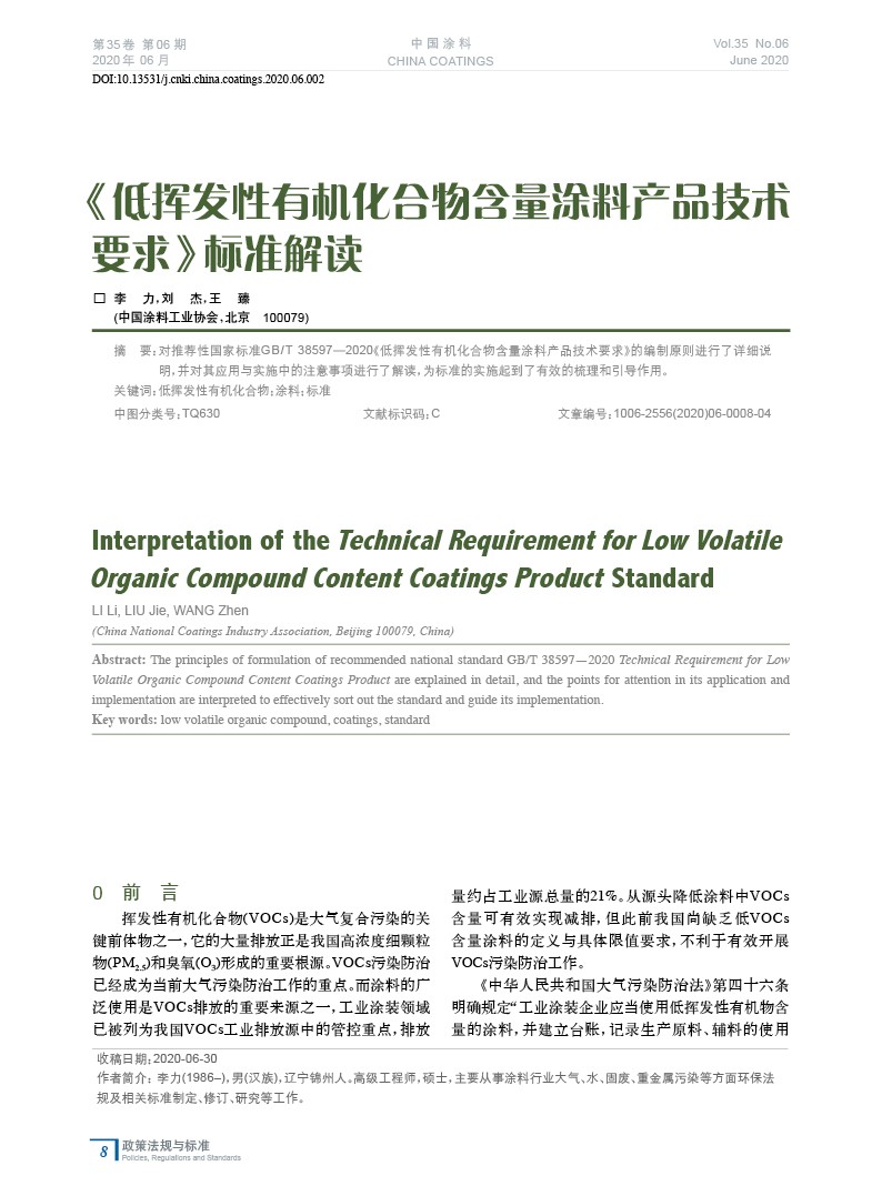 摘要:對推薦性國家標準GB/T 38597—2020《低揮發(fā)性有機化合物含量涂料產品技術要求》的編制原則進行了詳細說明,并對其應用與實施中的注意事項進行了解讀,為標準的實施起到了有效的梳理和引導作用。