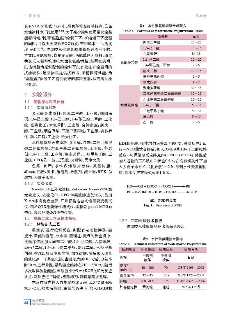 抗?jié)B咬水性聚氨酯的制備及涂料的性能研究