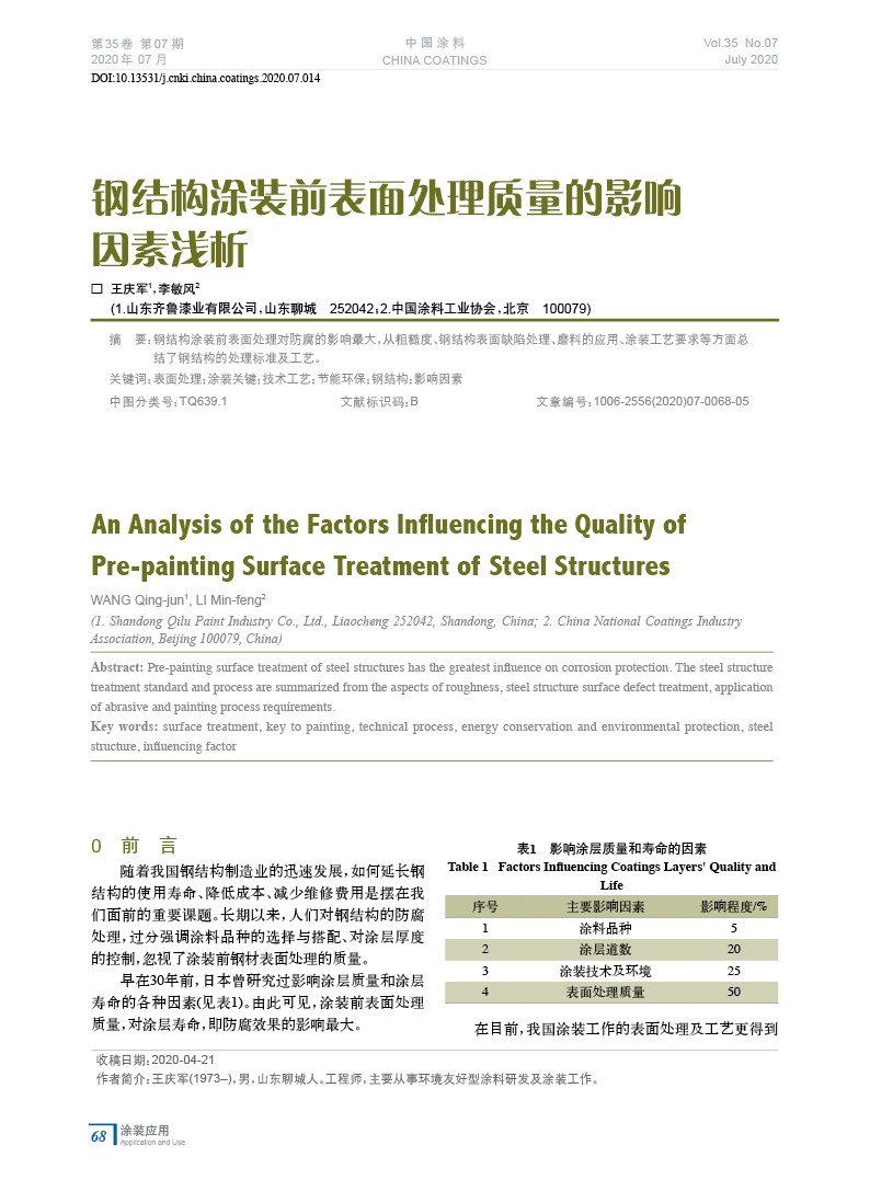 鋼結(jié)構(gòu)涂裝前表面處理質(zhì)量的影響因素淺析
