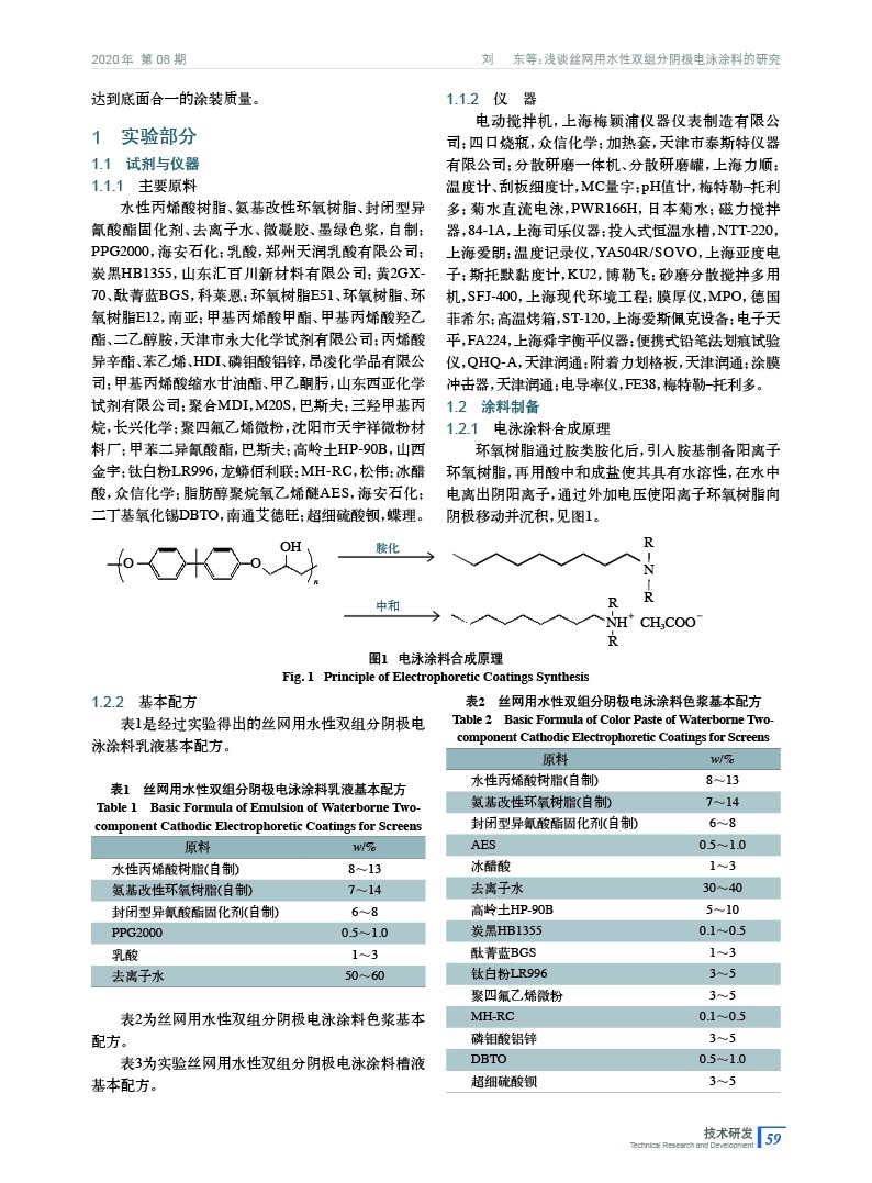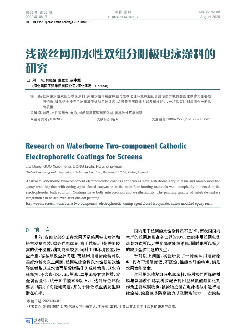 淺談絲網用水性雙組分陰極電泳涂料的研究