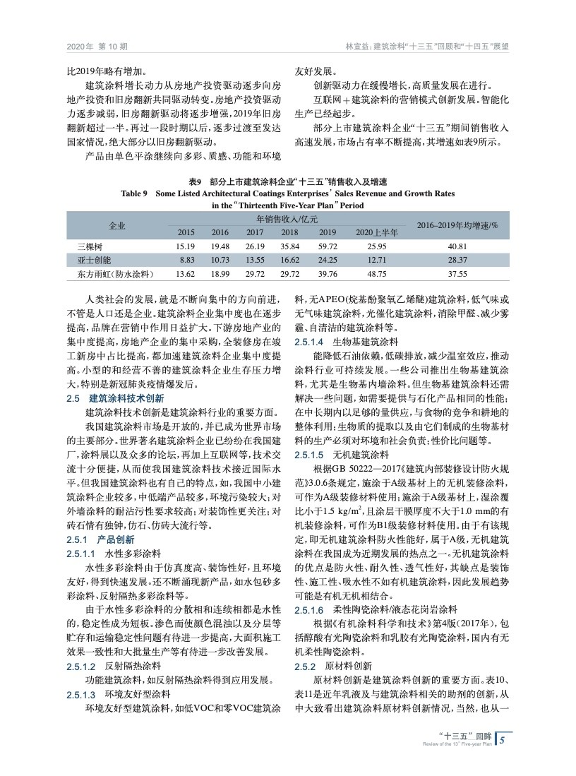 建筑涂料“十三五”回顧和“十四五”展望