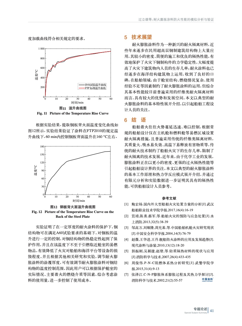 簡述了耐火膨脹涂料的基本組成和原理。通過有限元分析和涂料樣板實驗,介紹了耐火涂料在鋼結構耐火隔離上所起到的作用,并展望了耐火膨脹涂料所具有的性能優勢和在船舶耐火領域的發展應用前景。