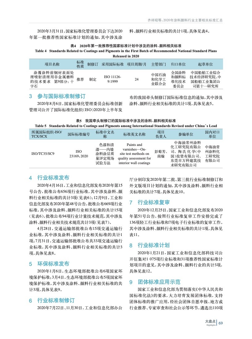 2020年涂料、顏料行業主要相關標準匯總