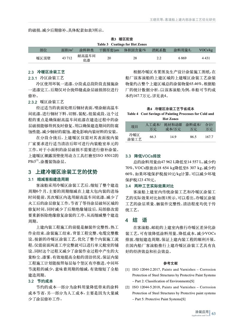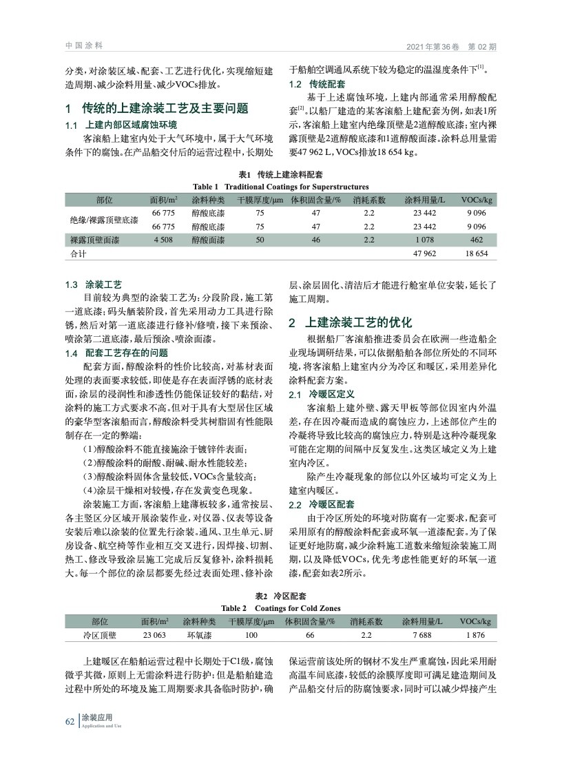 主要通過探索客滾船上建腐蝕環境分類,上建冷暖區劃分,推行冷暖區涂裝工藝,從而縮短上建內裝工程建造周期,降低涂料成本,減少VOCs排放。