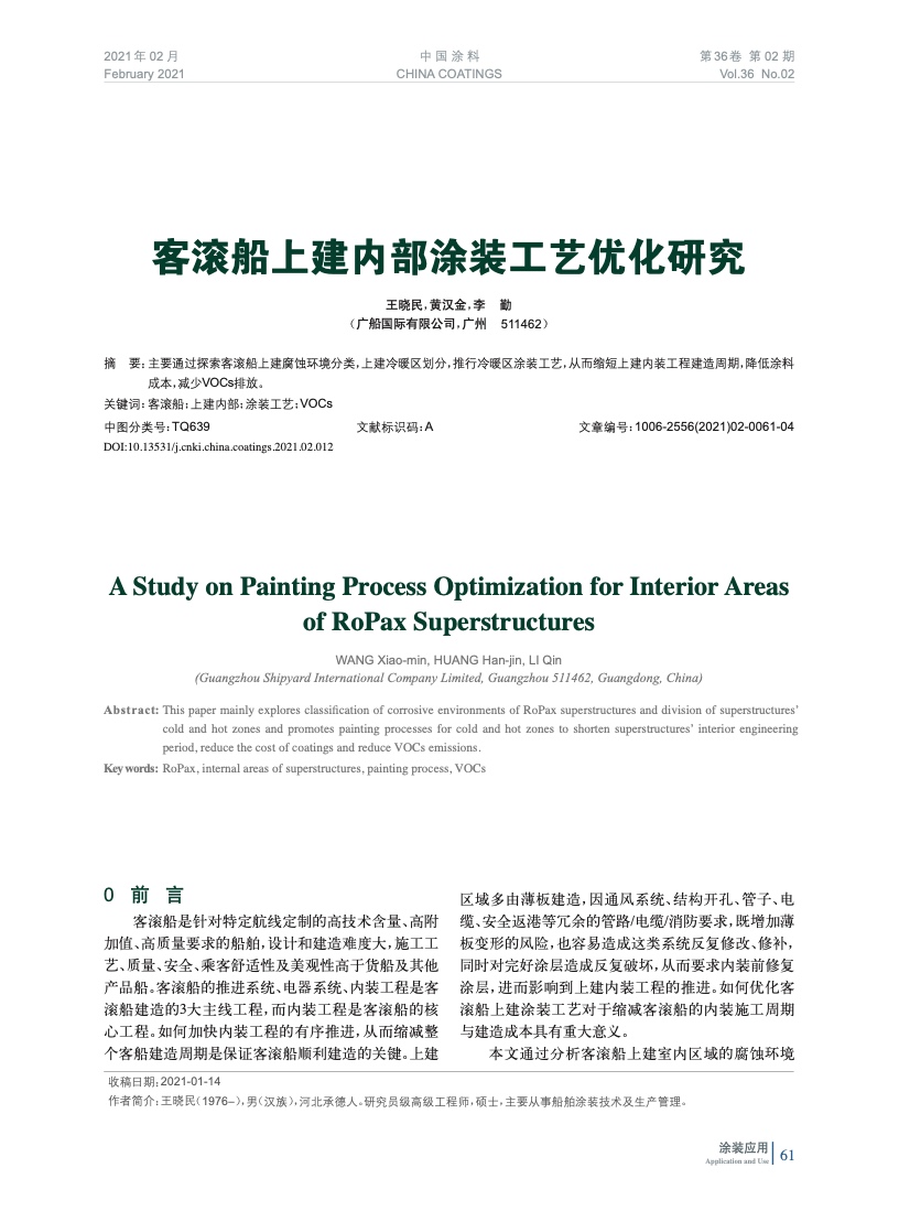 客滾船上建內部涂裝工藝優化研究