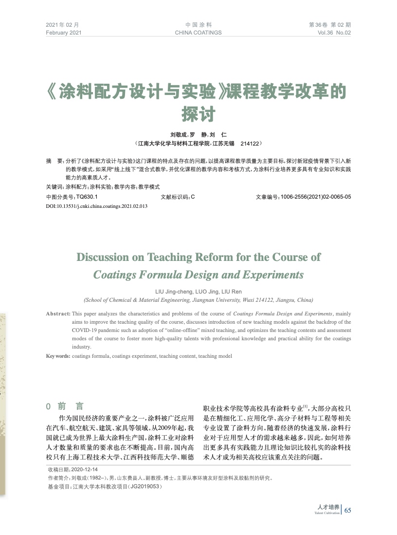 本文系作者@劉敬成,羅 靜,劉 仁 授權中國涂料網發表,并經中國涂料網編輯,未經允許不得轉載,如需轉載請聯系chinacoatingnet@vip.163.com