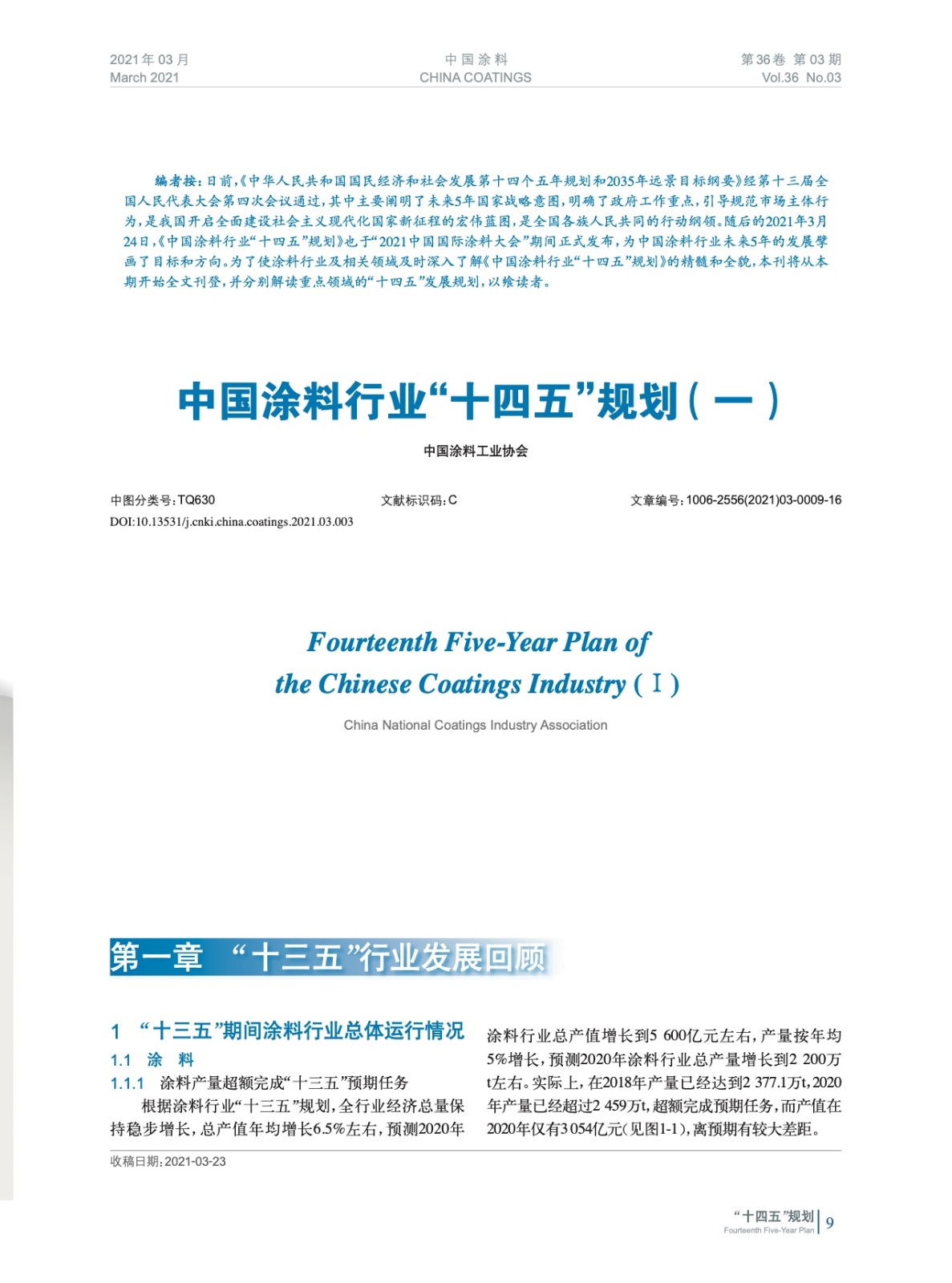 中國涂料行業(yè)“十四五”規(guī)劃(一)