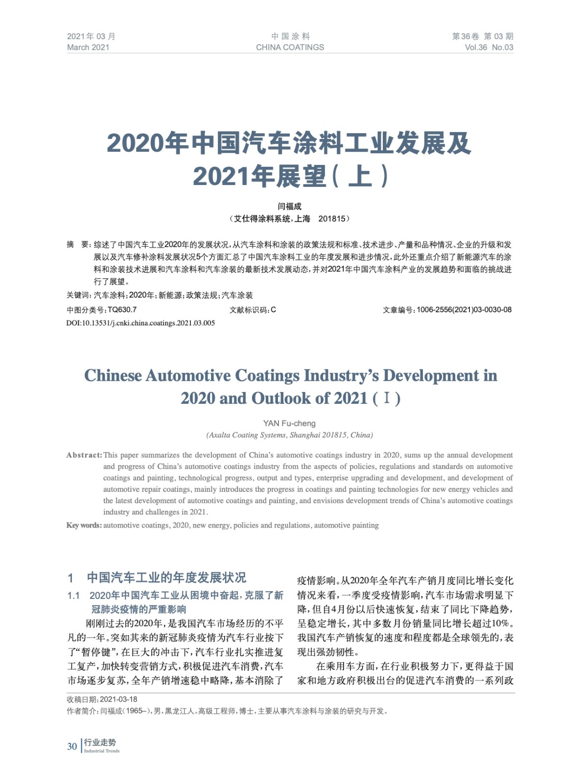 2020年中國汽車涂料工業發展及2021年展望(上)