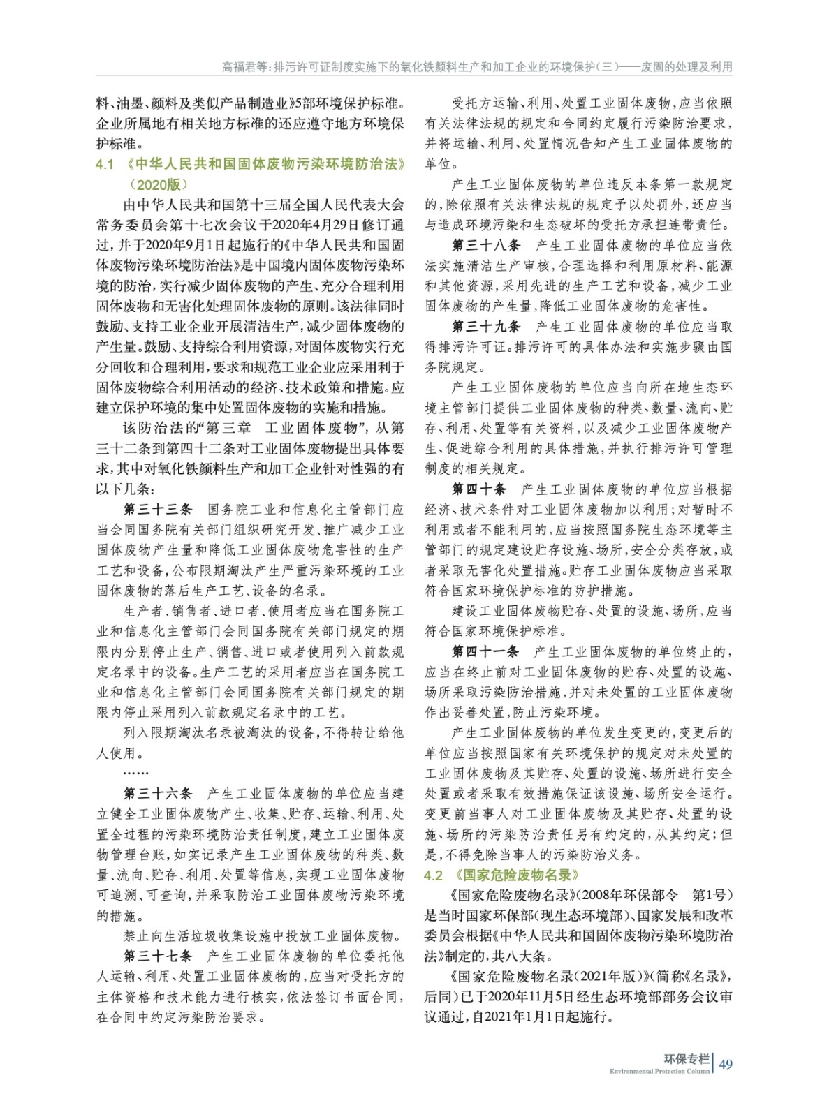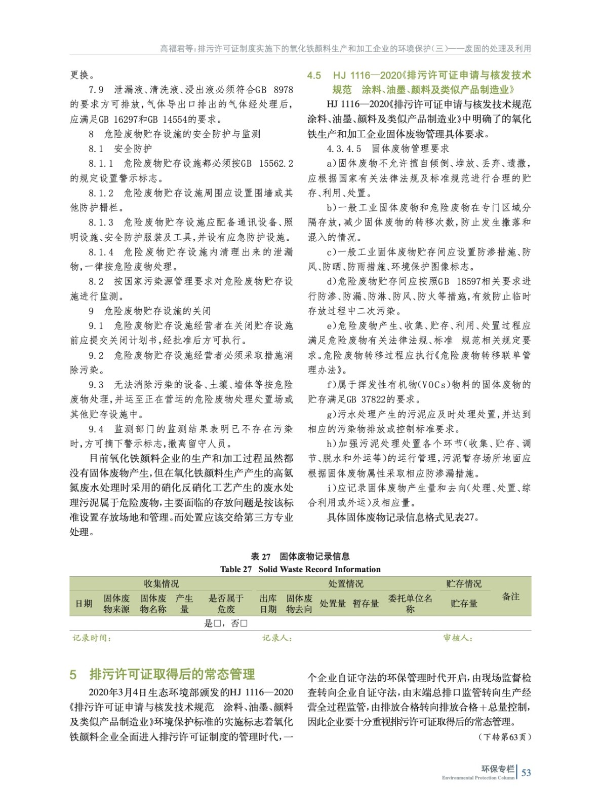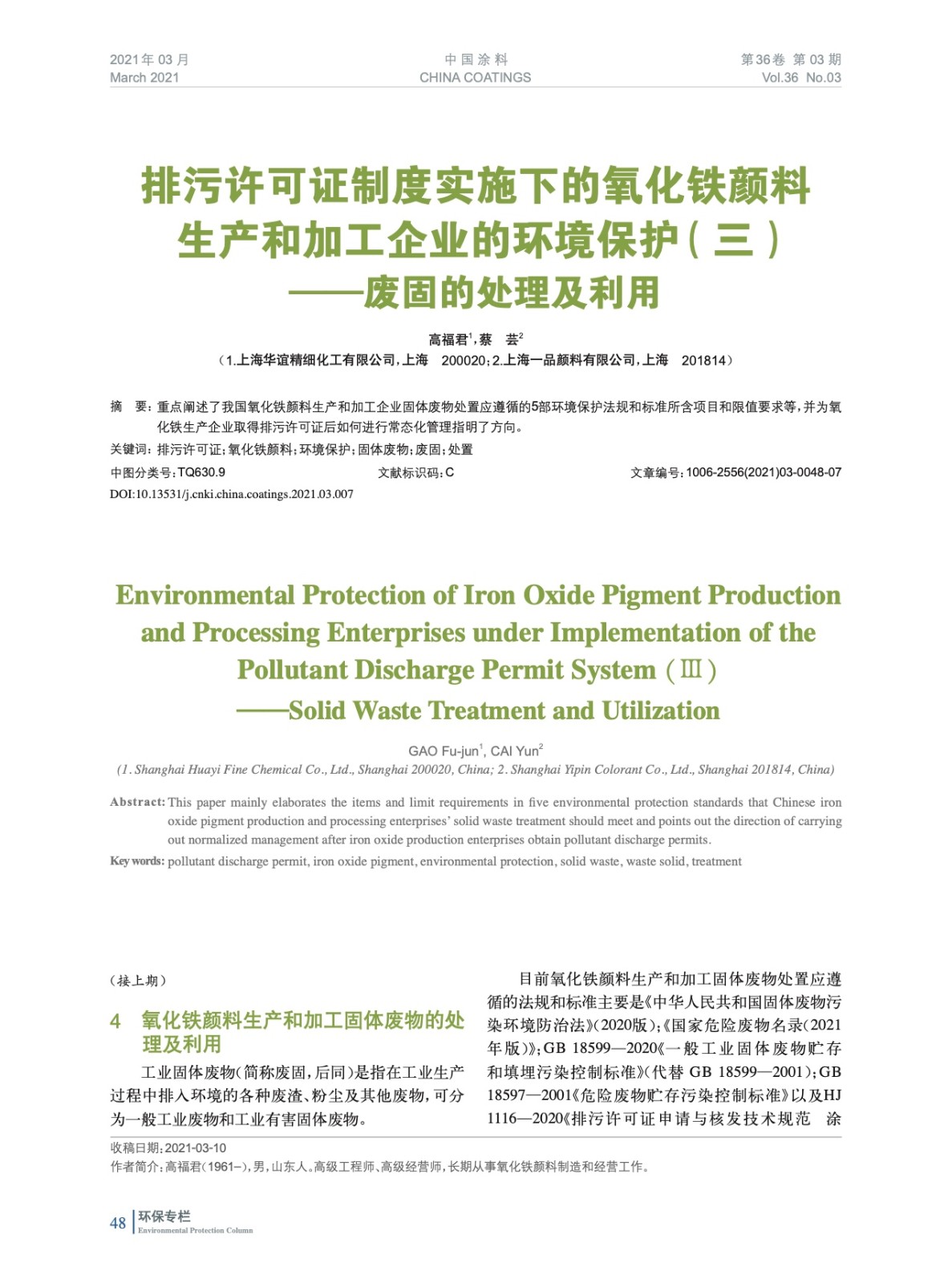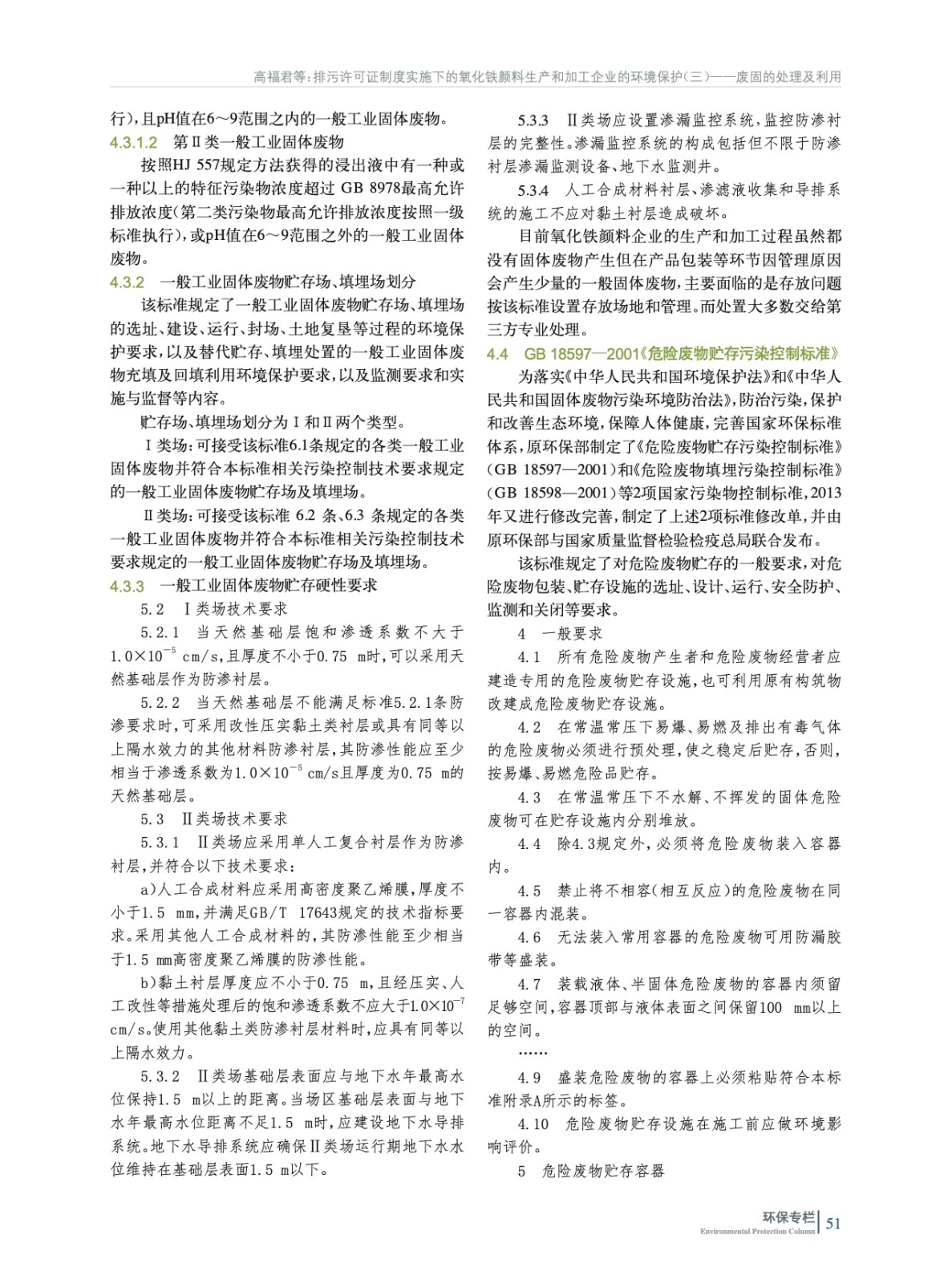 摘要:重點(diǎn)闡述了我國氧化鐵顏料生產(chǎn)和加工企業(yè)固體廢物處置應(yīng)遵循的5部環(huán)境保護(hù)法規(guī)和標(biāo)準(zhǔn)所含項(xiàng)目和限值要求等,并為氧化鐵生產(chǎn)企業(yè)取得排污許可證后如何進(jìn)行常態(tài)化管理指明了方向。