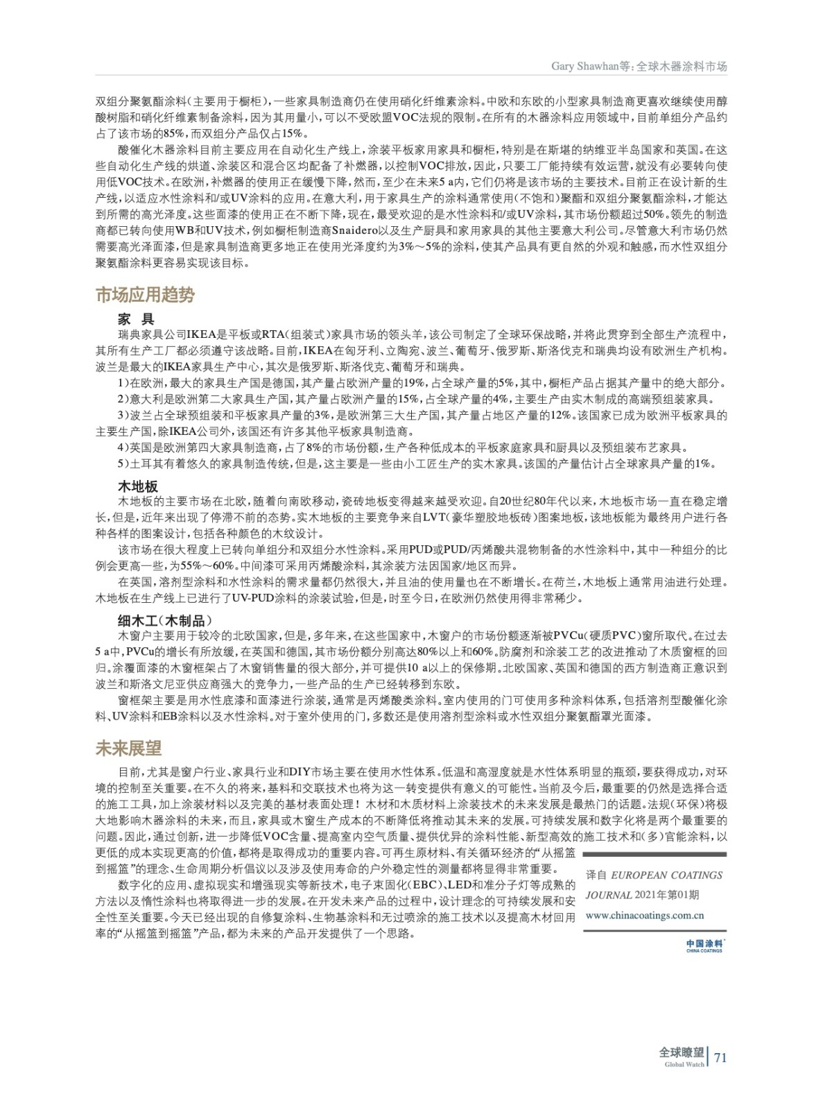 編者按:木器涂料市場在多個方面取得了持續發展。總地來說,對于那些在涂料配方、技術系列和生產制造工藝方面能成功地實現創新和不斷發展的公司來說,木器涂料市場仍然存在很多機會。