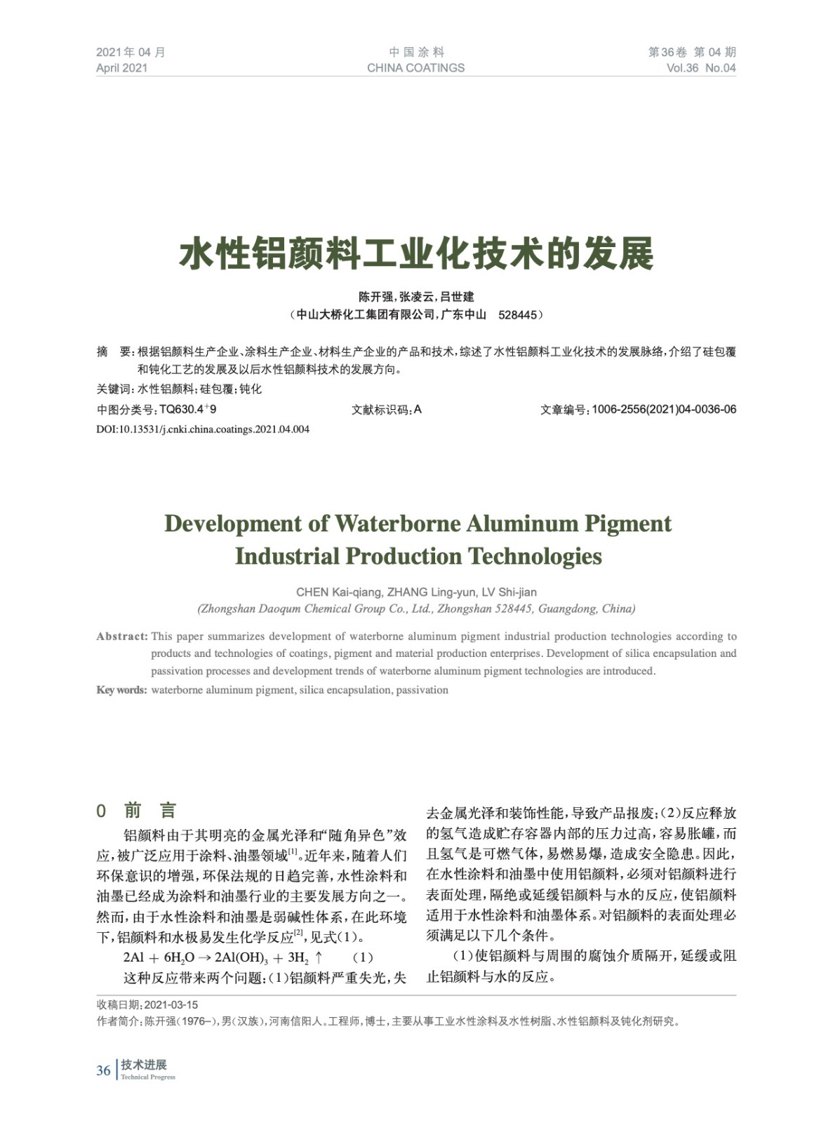 水性鋁顏料工業(yè)化技術的發(fā)展