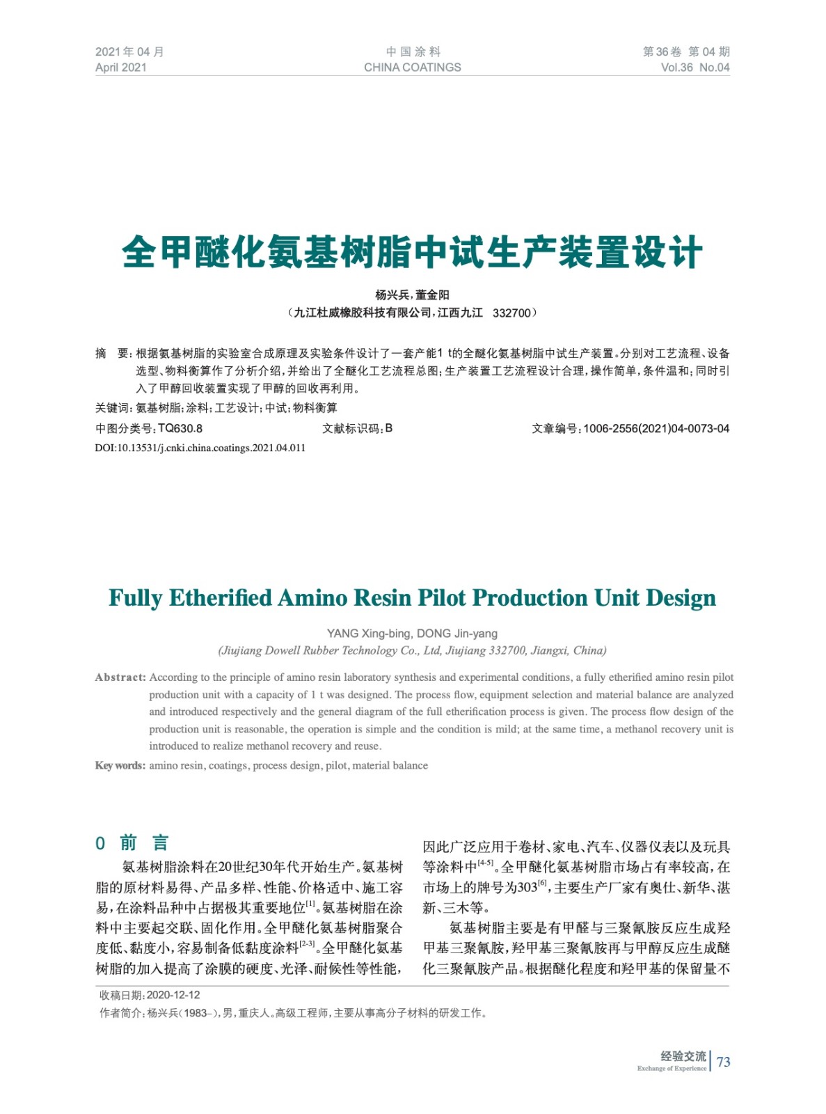 全甲醚化氨基樹脂中試生產(chǎn)裝置設(shè)計(jì)