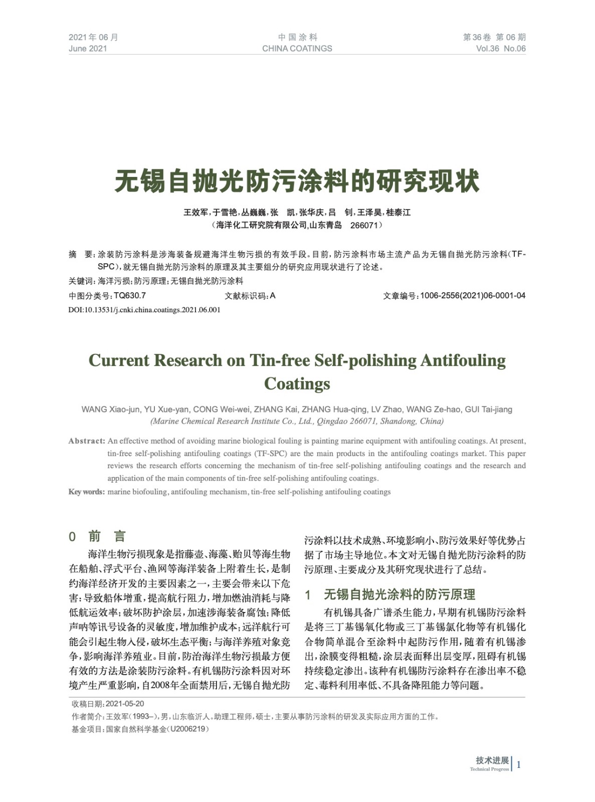 本文系作者@王效軍,于雪艷,叢巍巍,張 凱,張華慶,呂 釗,王澤昊,桂泰江 授權中國涂料網發表,并經中國涂料網編輯,未經允許不得轉載,如需轉載請聯系chinacoatingnet@vip.163.com