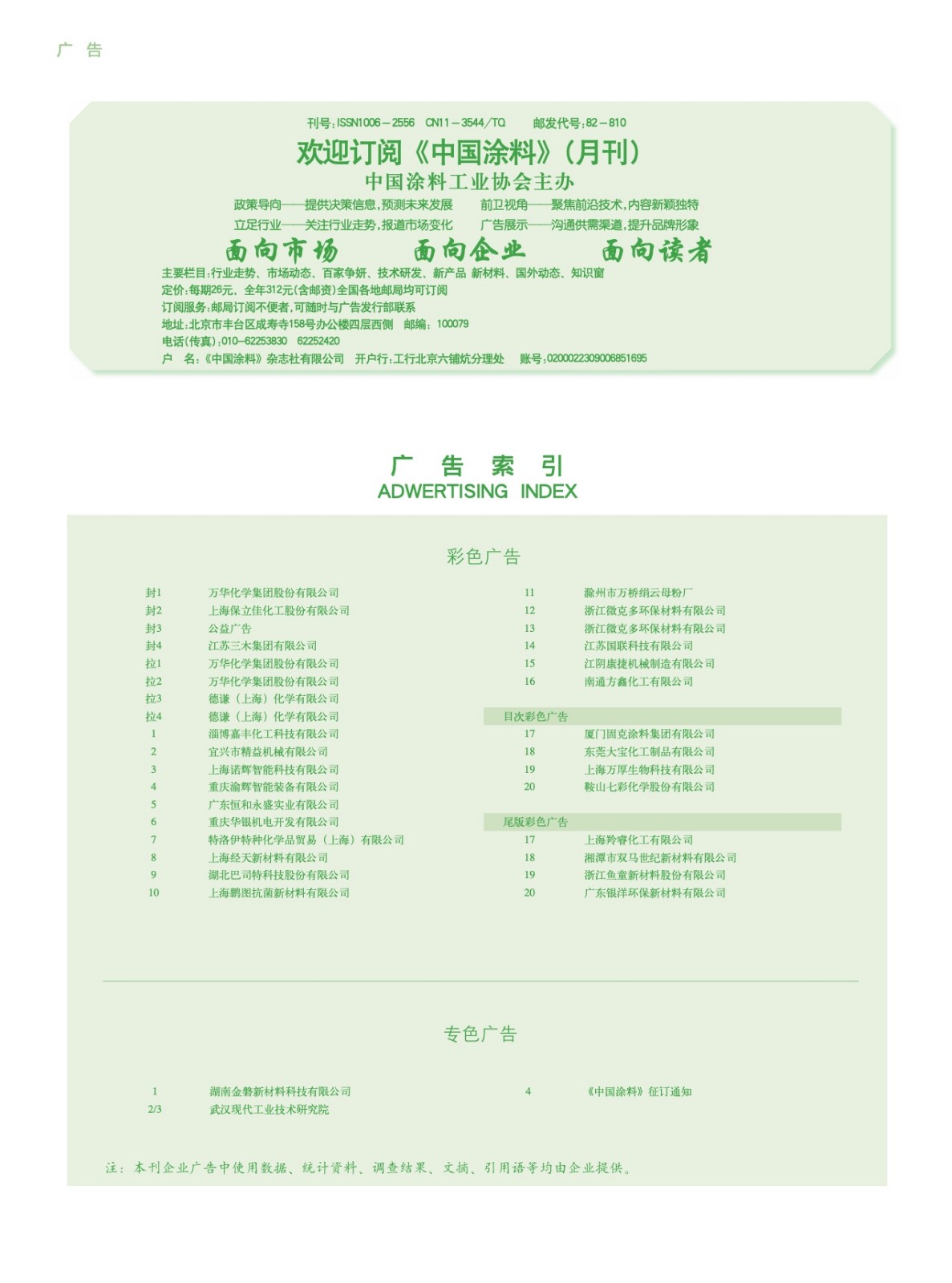 湖南金磐、武漢現(xiàn)代、《中國涂料》征訂通知