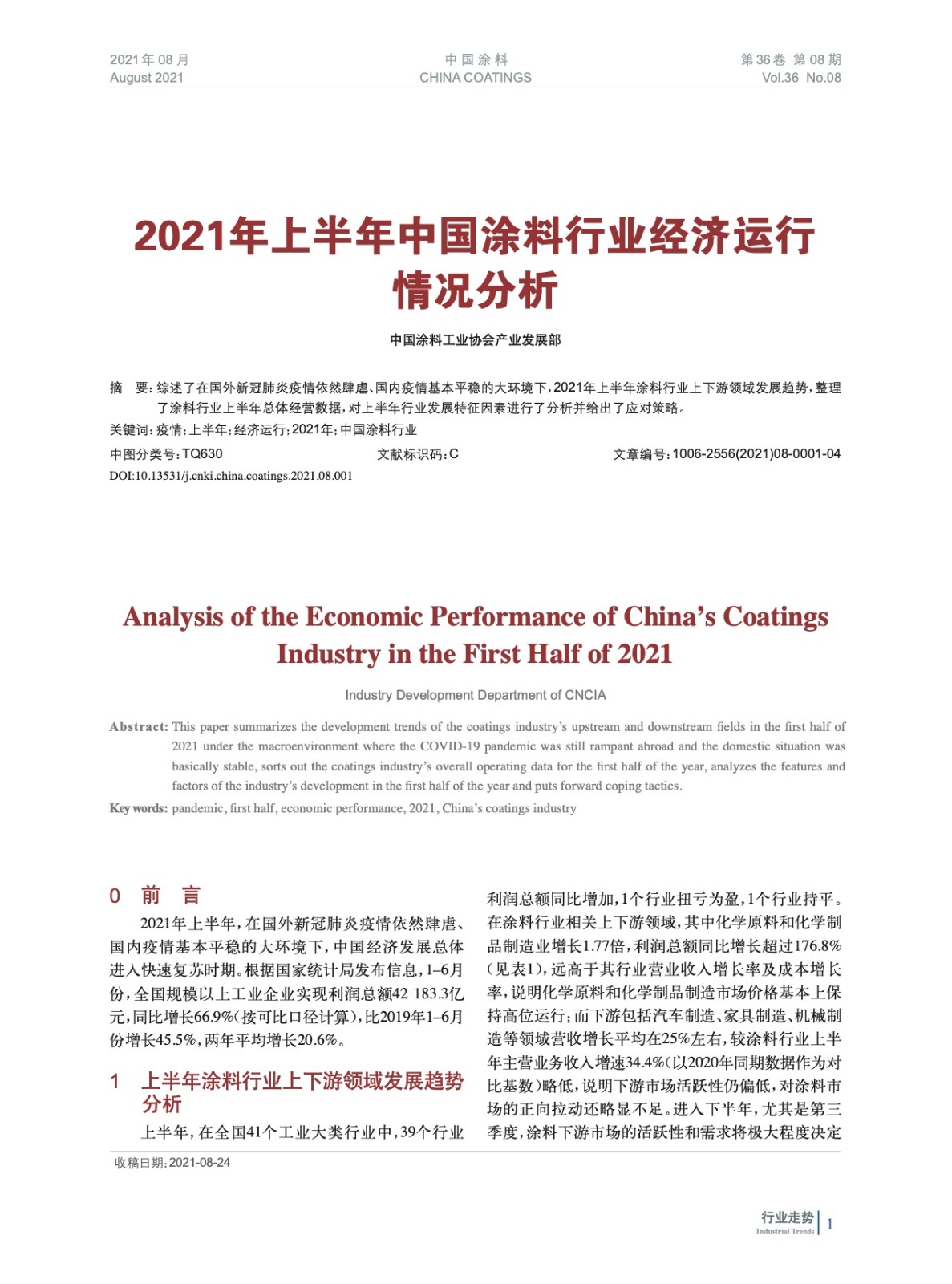 綜述了在國外新冠肺炎疫情依然肆虐、國內疫情基本平穩的大環境下,2021年上半年涂料行業上下游領域發展趨勢,整理了涂料行業上半年總體經營數據,對上半年行業發展特征因素進行了分析并給出了應對策略。