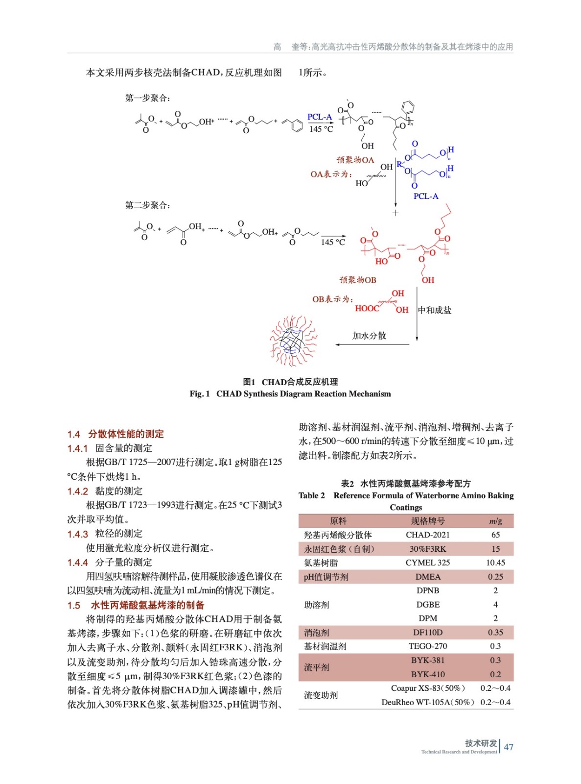 高光高抗沖擊性丙烯酸分散體的制備及其在烤漆中的應用