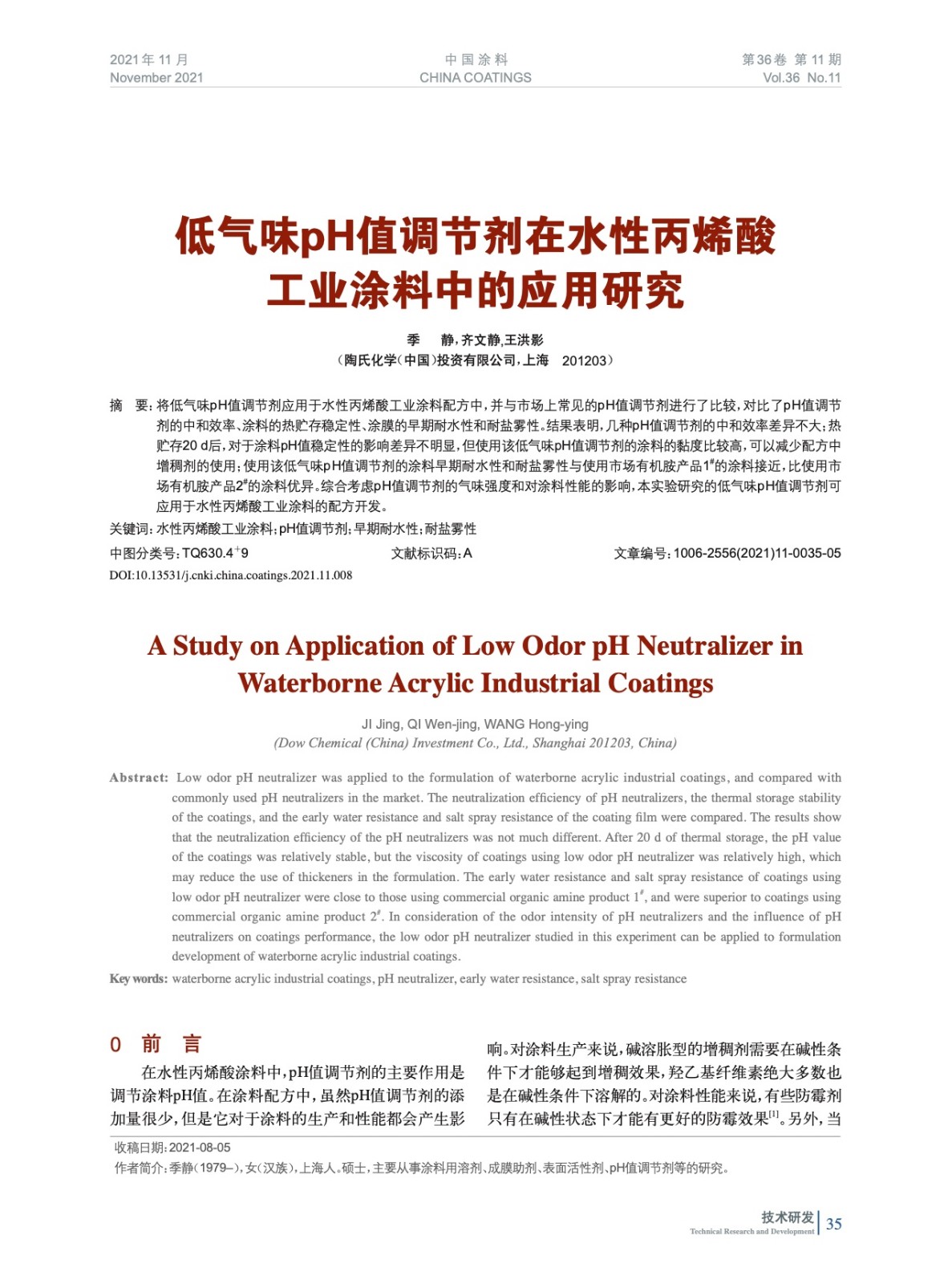 本文系作者@季 靜,齊文靜,王洪影 授權(quán)中國涂料網(wǎng)發(fā)表,并經(jīng)中國涂料網(wǎng)編輯,未經(jīng)允許不得轉(zhuǎn)載,如需轉(zhuǎn)載請聯(lián)系chinacoatingnet@vip.163.com