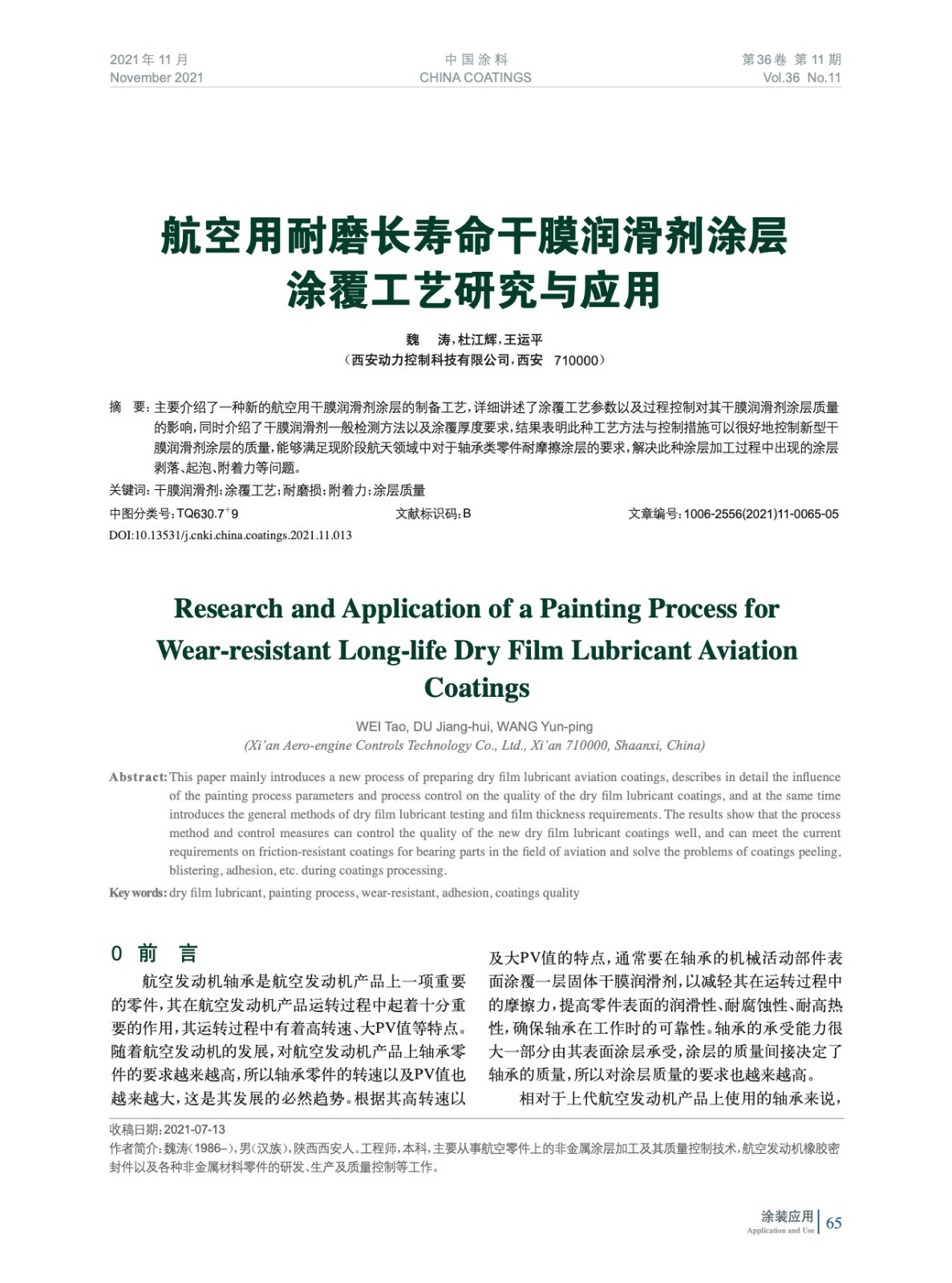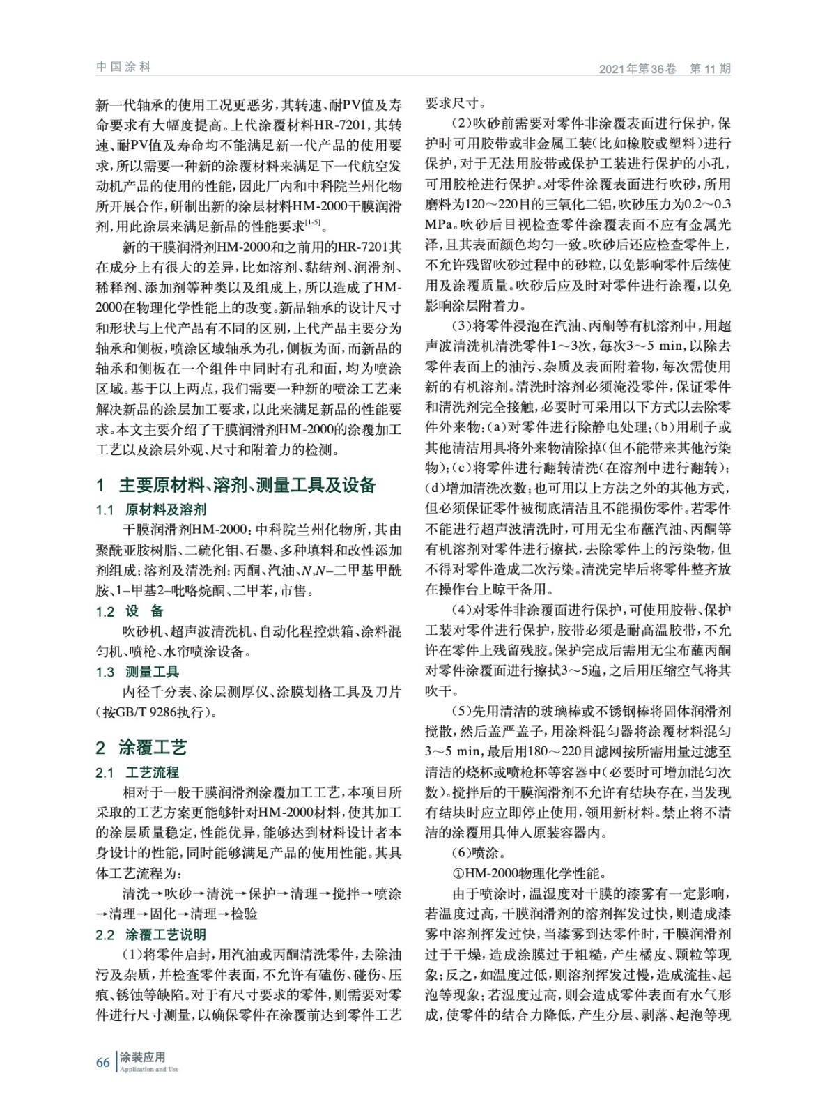 航空用耐磨長壽命干膜潤滑劑涂層涂覆工藝研究與應用