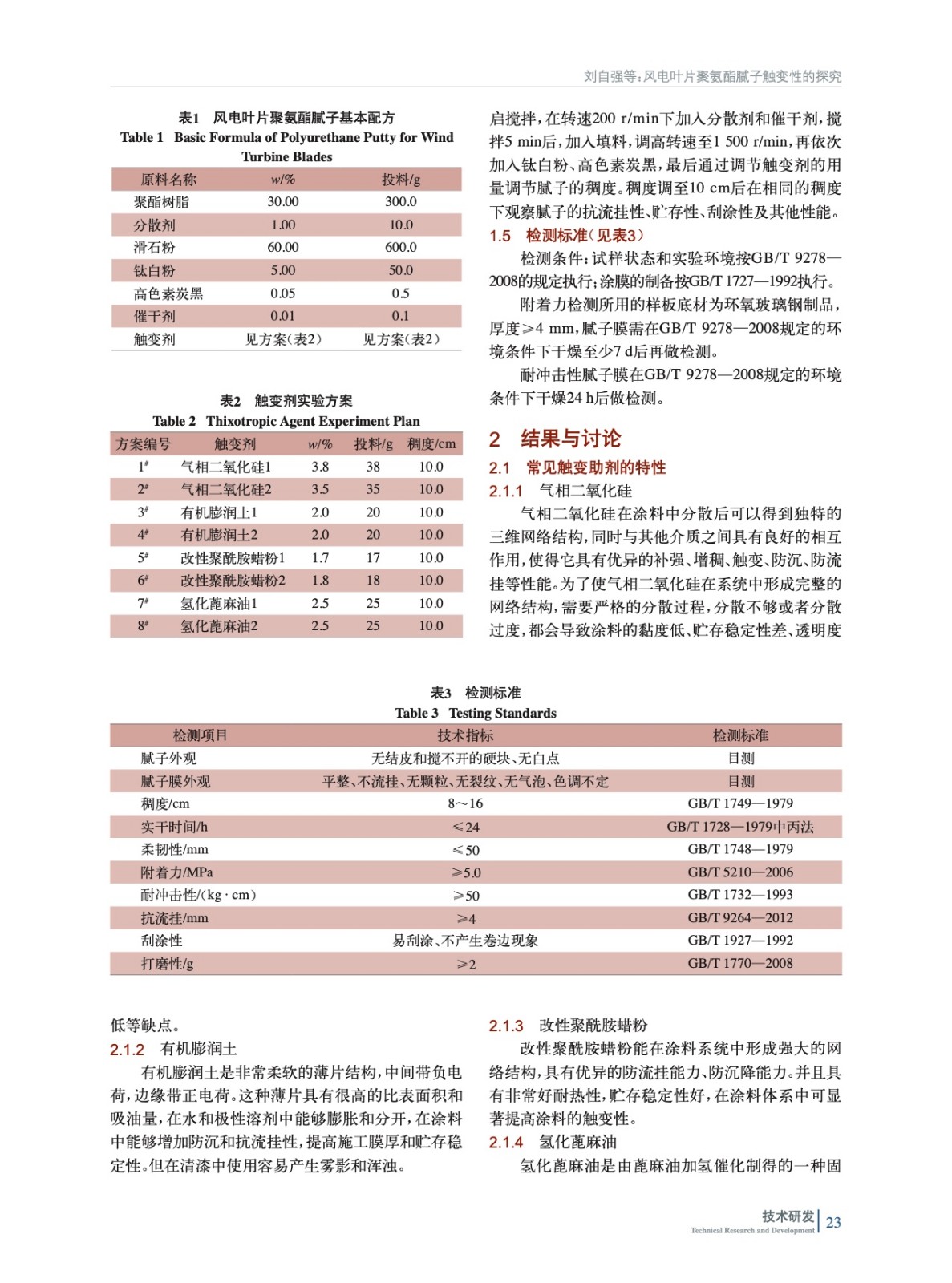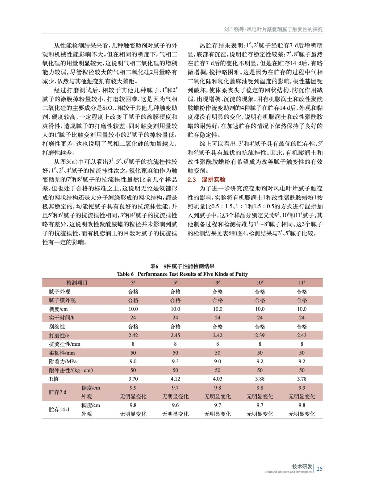 摘要:實(shí)驗(yàn)通過多個(gè)角度對(duì)風(fēng)電葉片膩?zhàn)拥挠|變性進(jìn)行了探究。測(cè)試結(jié)果表明,觸變助劑對(duì)膩?zhàn)拥臋C(jī)械性能幾乎無影響,通過有機(jī)膨潤土和改性聚酰胺蠟粉的合理搭配使用,既能讓風(fēng)電葉片聚氨酯膩?zhàn)泳哂袃?yōu)良的貯存穩(wěn)定性,又使其有好的抗流掛性和刮涂性。