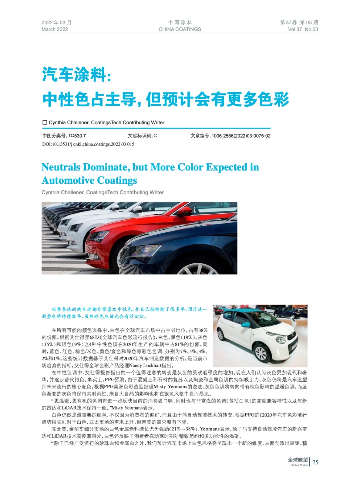 發(fā)表于2022-04-28 14:29:58| 次閱讀| 來源中國涂料| 作者Cynthia Challener