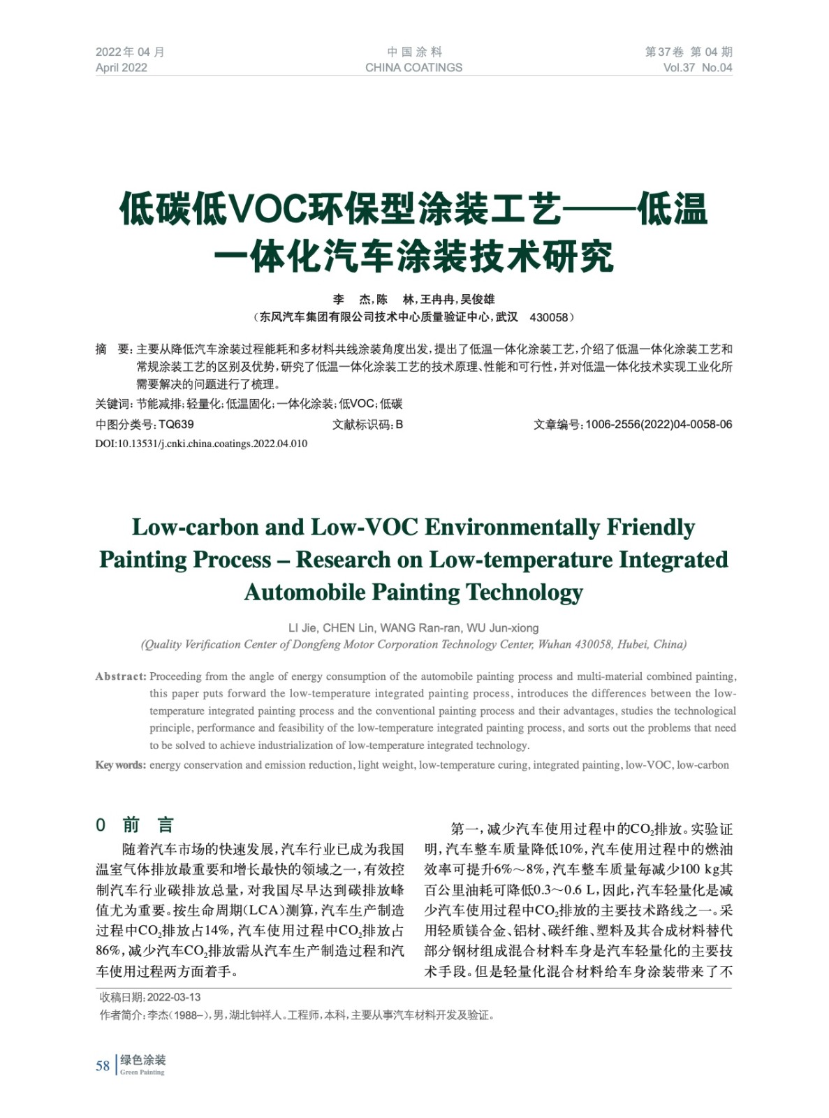 低碳低VOC環(huán)保型涂裝工藝——低溫一體化汽車涂裝技術研究