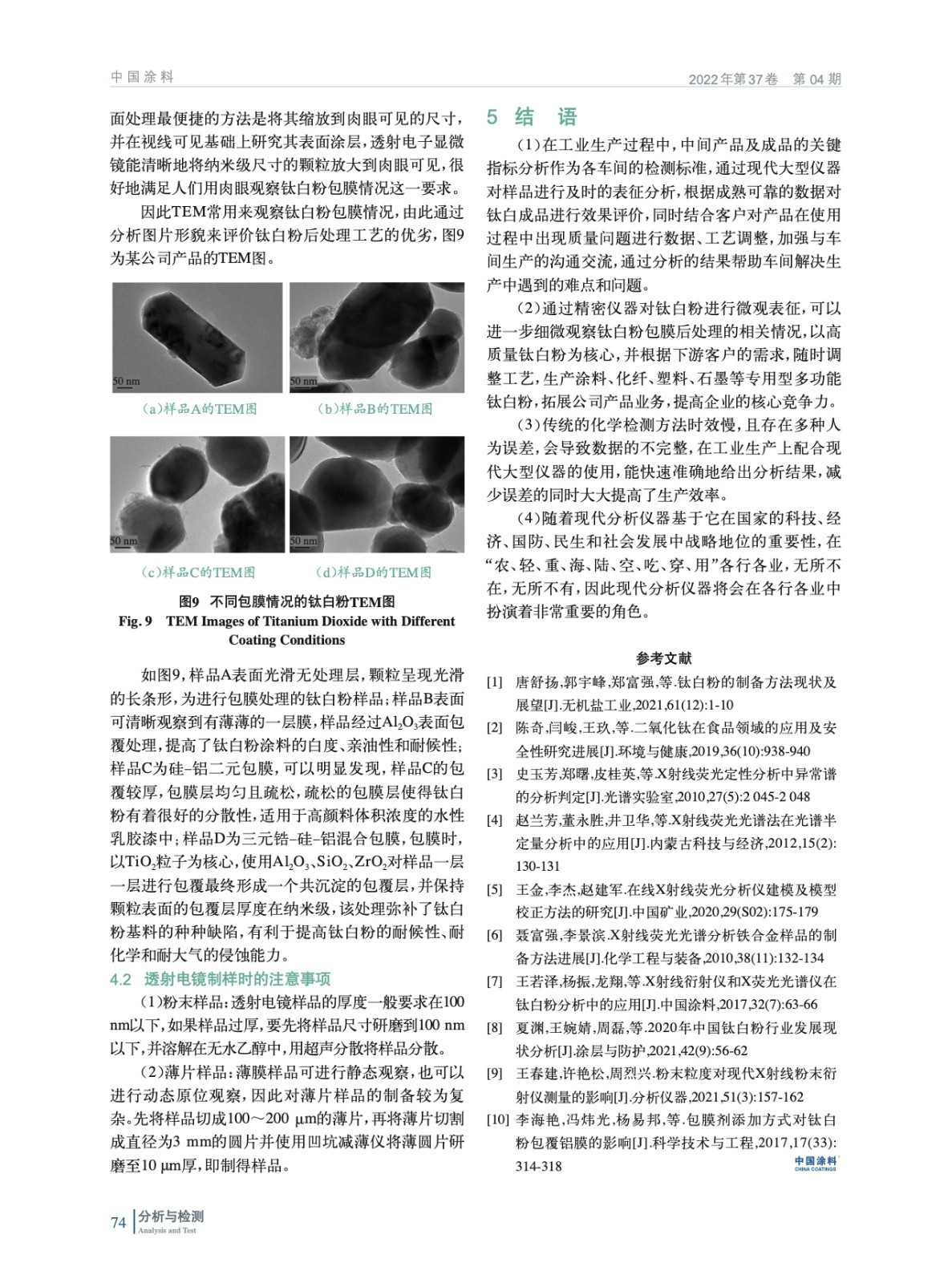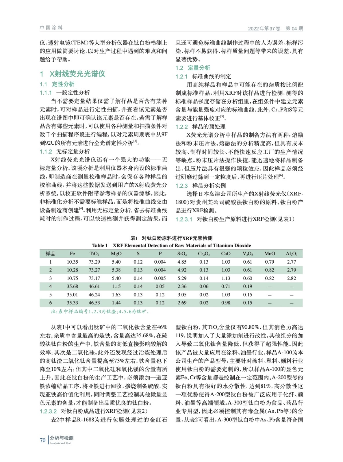 摘要:以幾X射線熒光光譜儀、X射線衍射儀、激光粒度儀、透射電鏡等大型分析儀器對鈦白粉在生產過程中的檢測效果為例,介紹如何通過儀器檢測實現對鈦白粉的定性、定量分析并對鈦白成品進行一定的效果評價,通過分析檢測的結果解決生產中遇到的難點和問題。