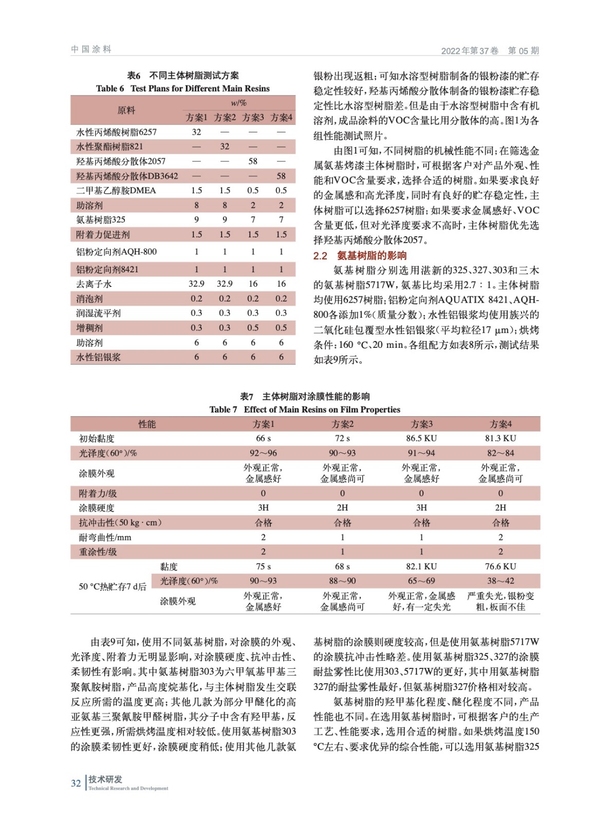 摘要:介紹了鋼輪轂用水性涂料的制備方法及涂層性能。實驗采用控制變量法,研究分析了不同主體樹脂、氨基樹脂、鋁粉定向劑、不同類型的水性鋁銀漿以及不同分散工藝對產品性能的影響,從而篩選出合適的原材料,找到合適的分散工藝。經測試,制備的鋼輪轂用水性涂料符合行業標準和環保要求。