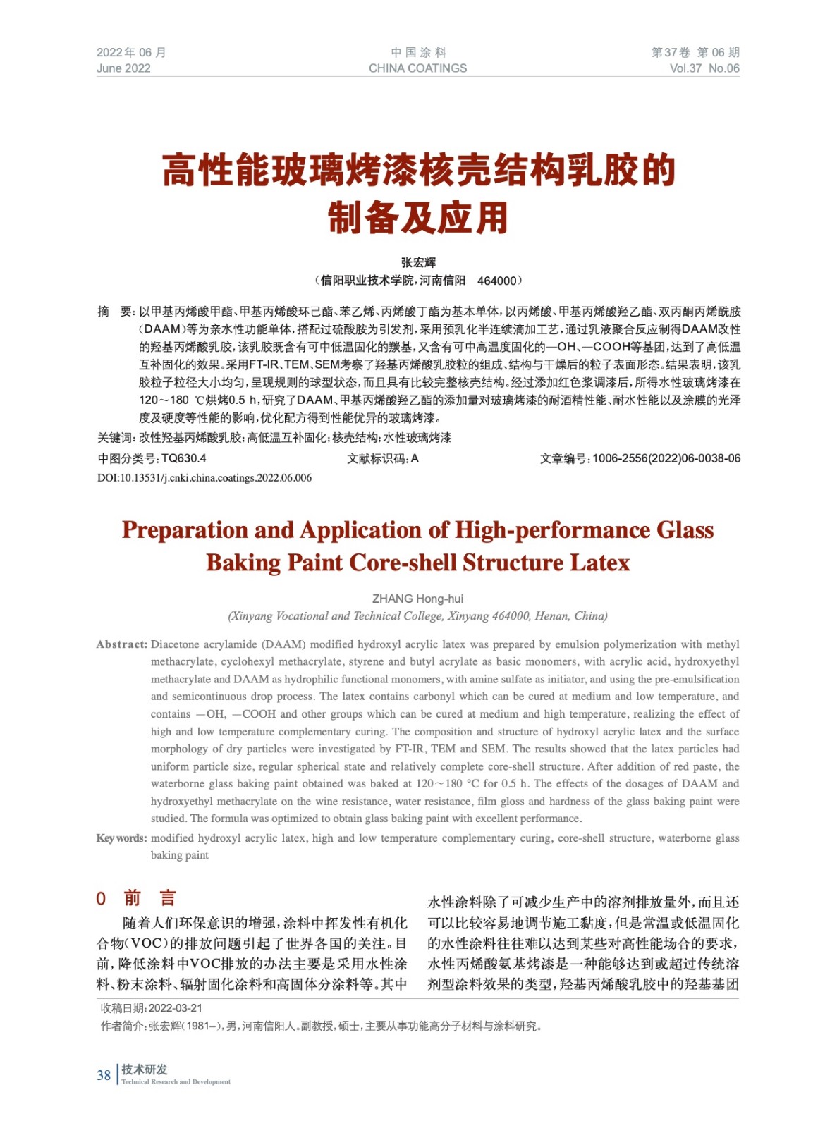高性能玻璃烤漆核殼結構乳膠的制備及應用