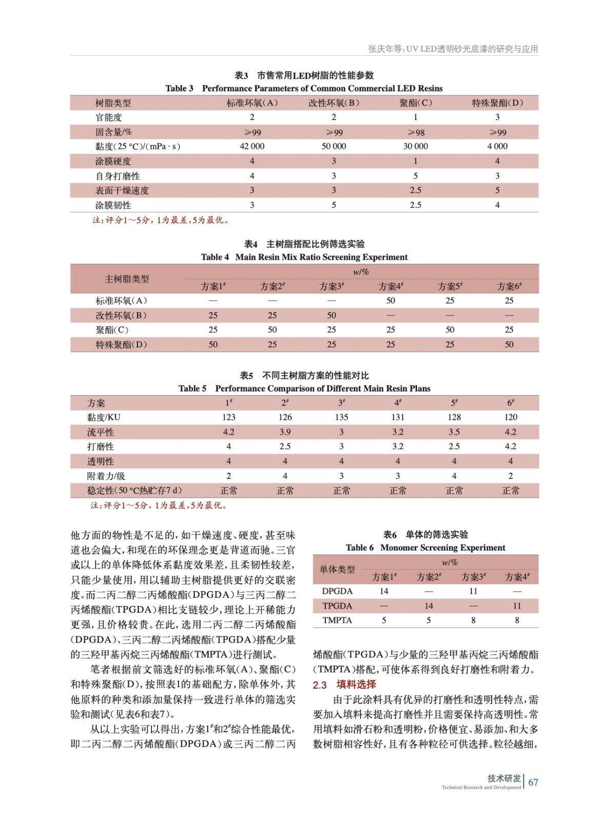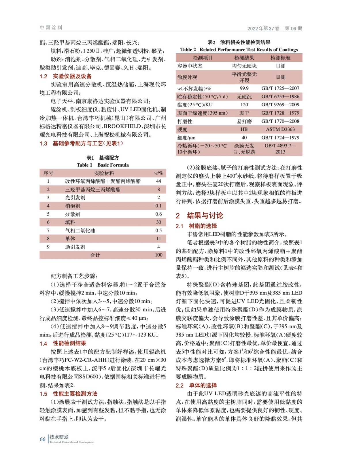 針對UV LED輥涂透明砂光底漆,從UV樹脂、活性稀釋劑、填料、光引發劑和胺類助引發劑選擇等方面進行探討,通過實驗論證以及輥涂設備應用測試,驗證了其在工業化應用上的可行性。