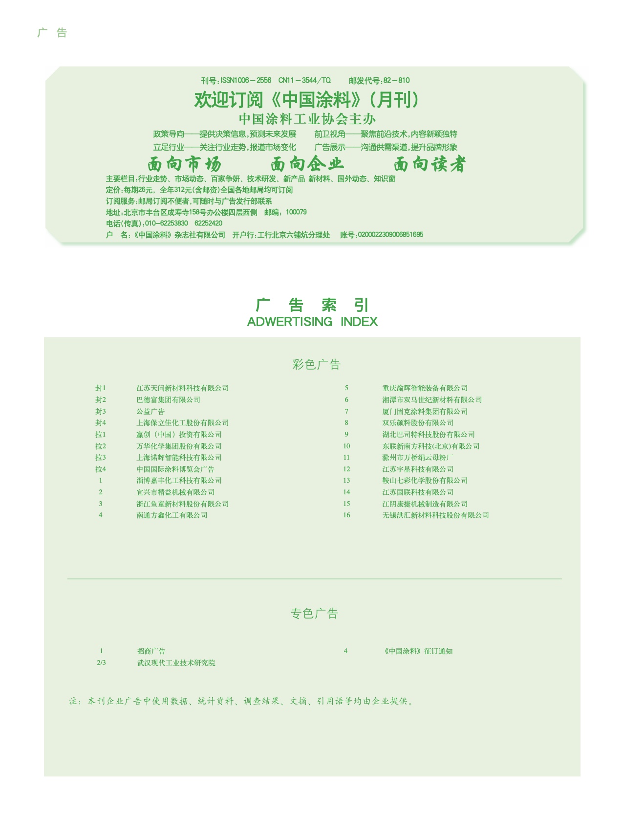 招商廣告、武漢現代、《中國涂料》征訂通知