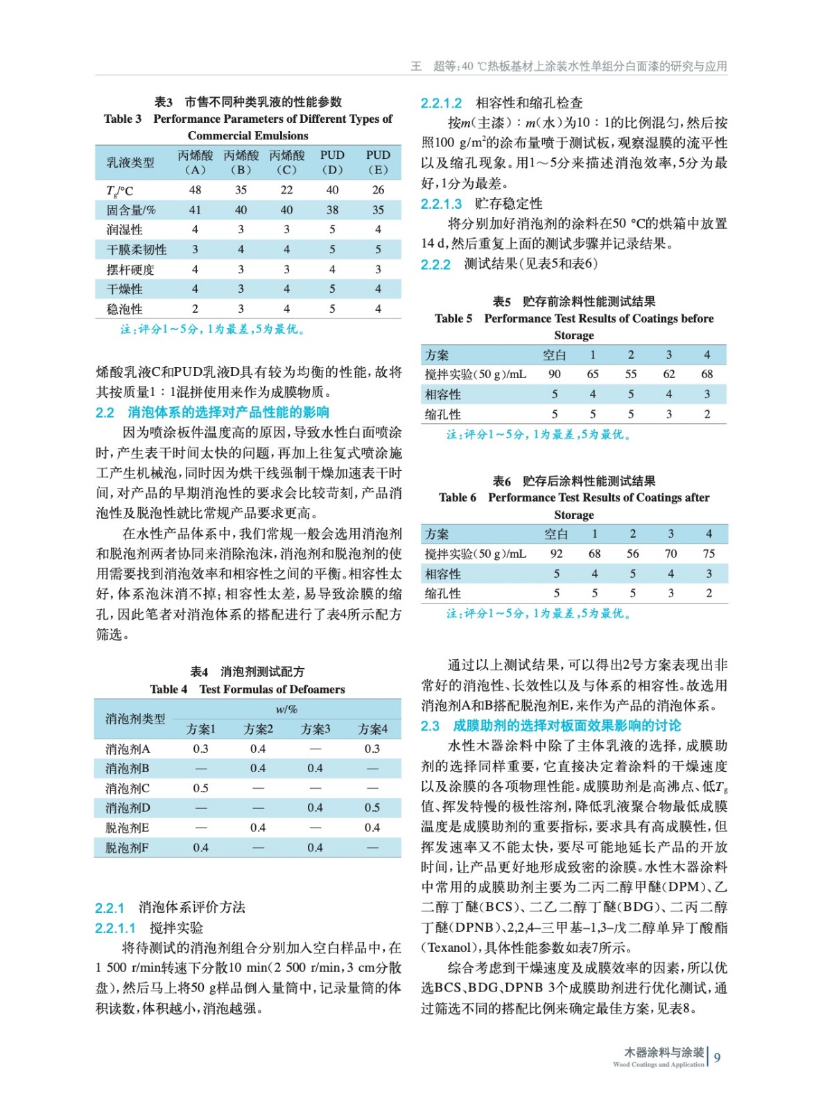 針對40 ℃熱板基材涂裝的水性單組分白面漆,從不同乳液類型選擇、成膜助劑篩選、消泡劑及潤濕體系搭配等方面進行探討,通過不同的實驗論證及測試,并通過往復機械噴涂應用測試,驗證了其在工業化生產上的可行性。