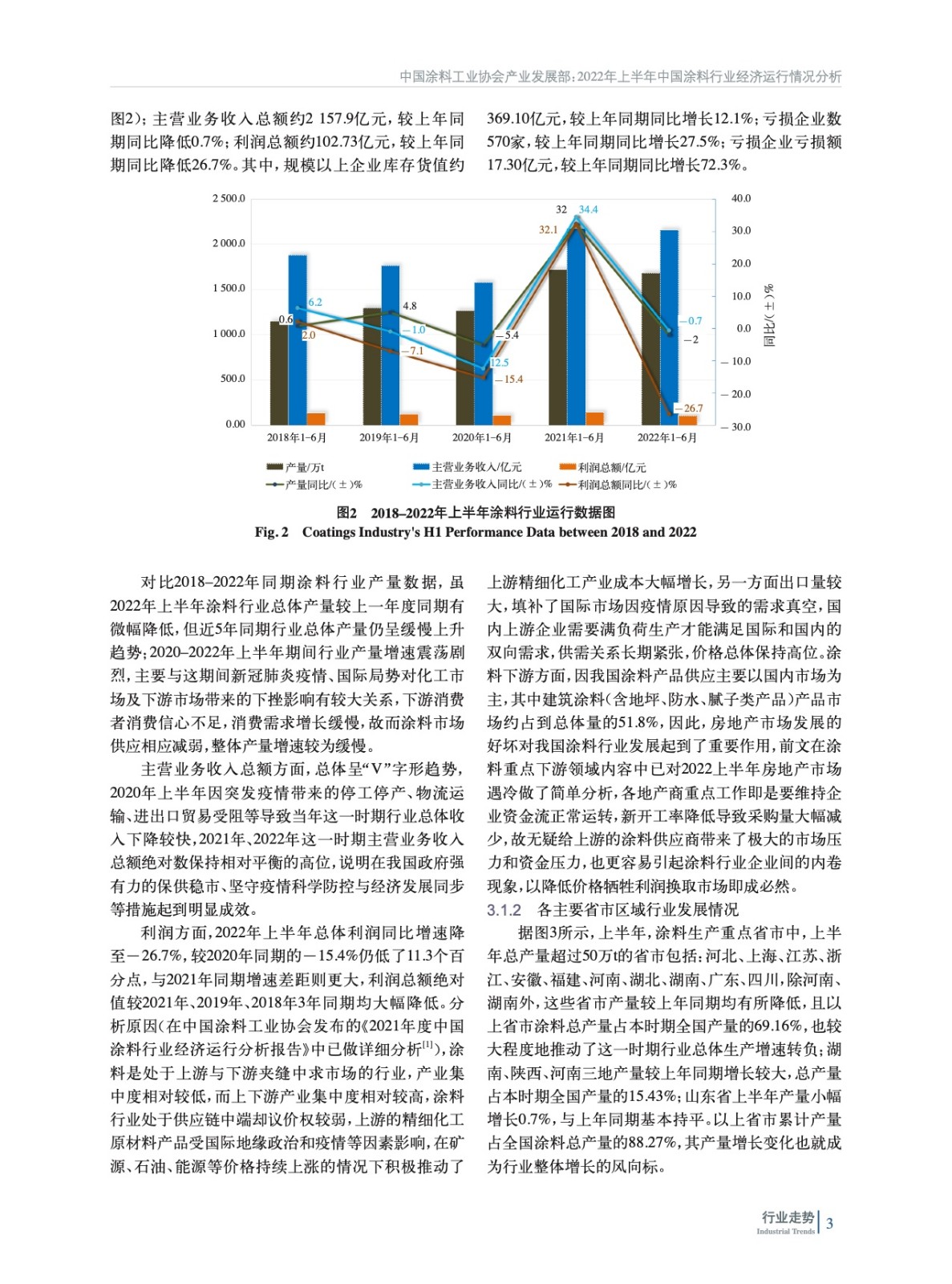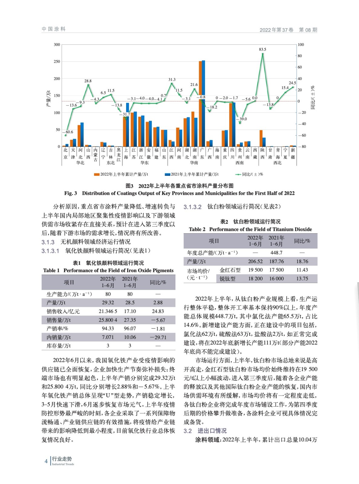 綜述了在受到宏觀經濟下行壓力、上游原材料價格持續高位運行、下游市場不景氣等綜合因素影響下,2022年上半年涂料行業及下游領域發展情況,整理了涂料、顏料行業上半年總體經濟運行數據,并對下半年涂料行業經濟運行走勢進行了預測。