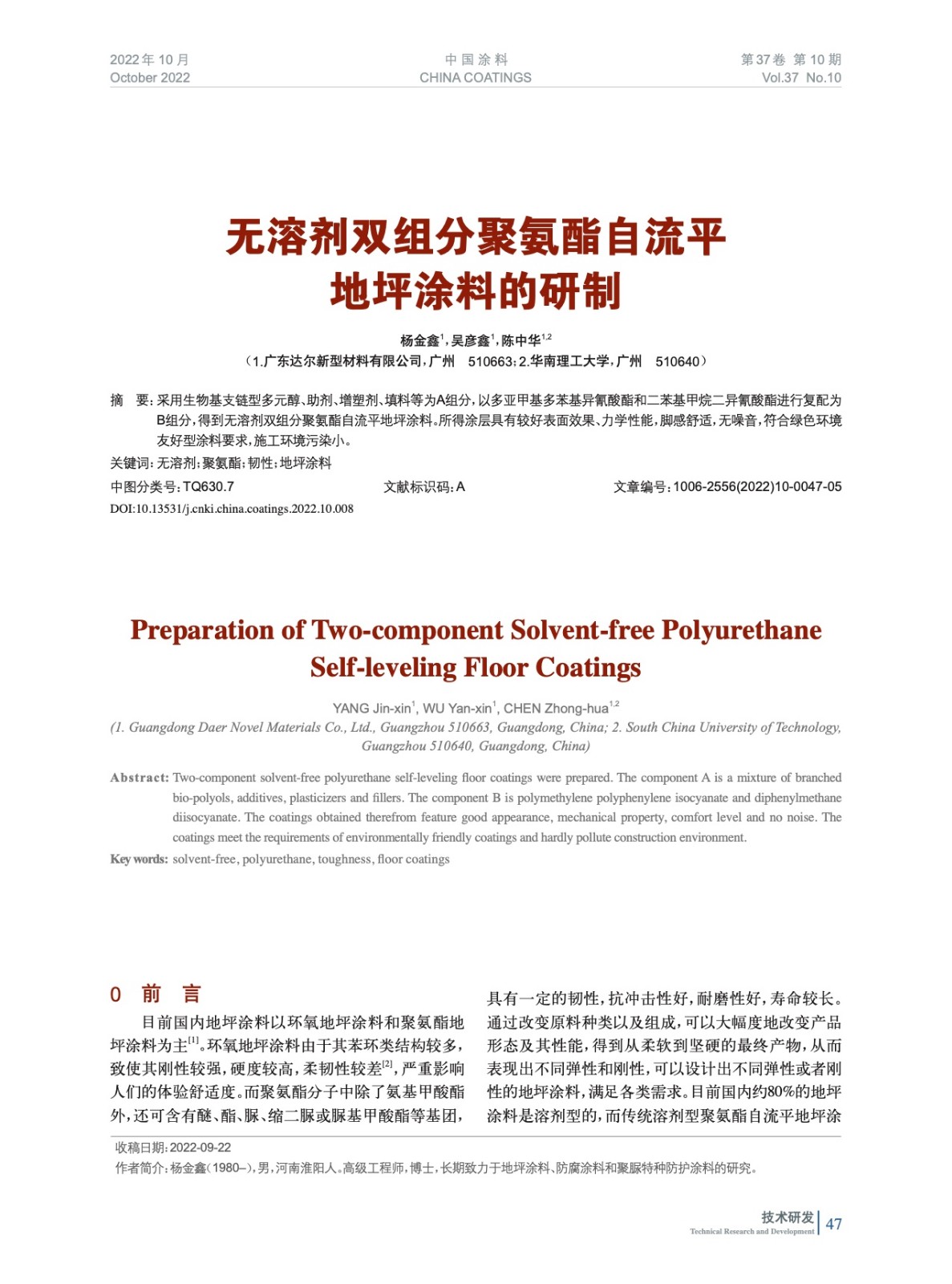 無溶劑雙組分聚氨酯自流平地坪涂料的研制