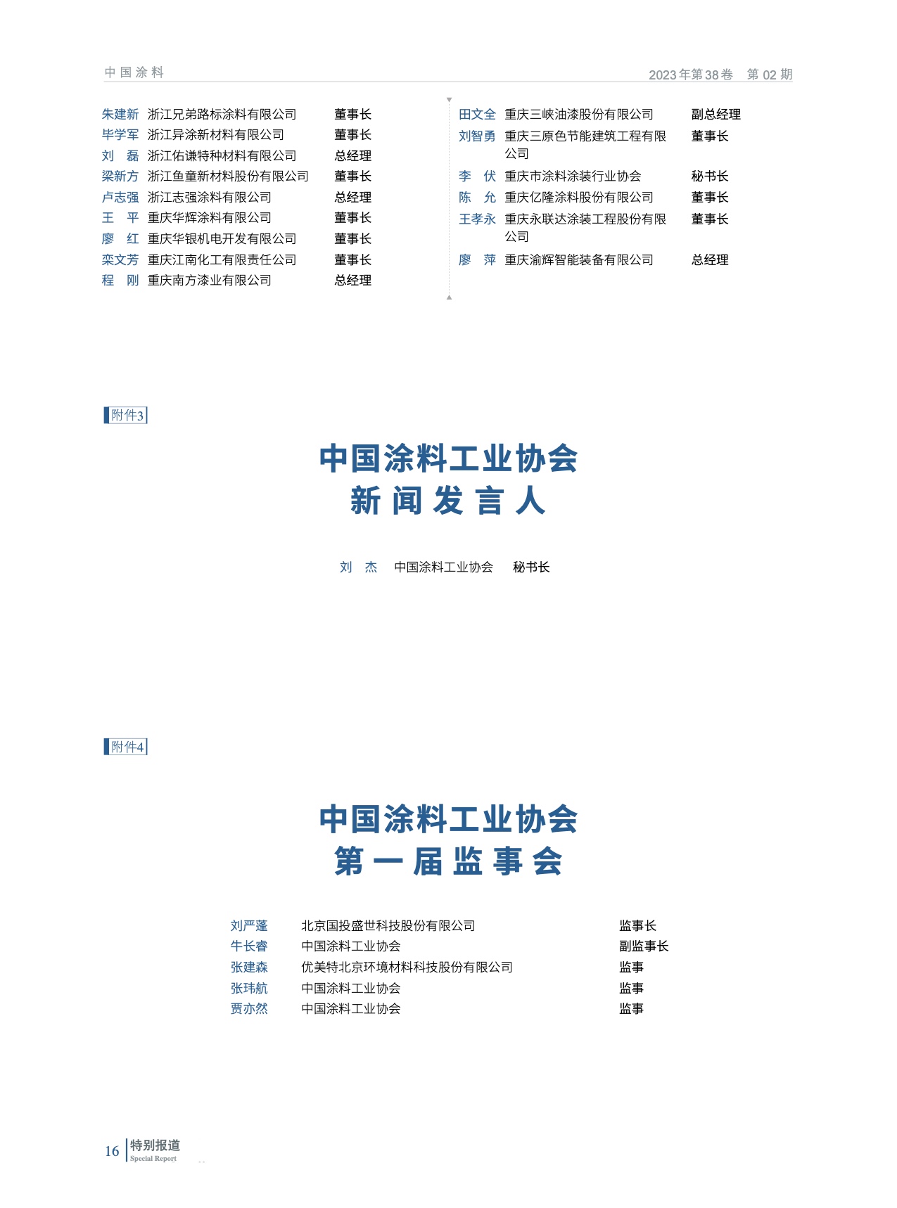 摘要:2023年2月13日,中國涂料工業協會第九屆一次會員代表大會暨第九屆一次理事會在北京以“線下+線上”形式圓滿召開。會議在國務院國有資產管理委員會與中國石油和化學工業聯合會的指導下進行,選舉產生了中國涂料工業協會新一屆理事會,劉普軍同志當選為中國涂料工業協會第九屆理事會會長,孫蓮英同志當選為第九屆理事會名譽會長。丁艷梅(駐會)等37名同志當選為第九屆理事會副會長,黎義忠等8位同志當選為第九屆理事會特邀副會長,劉杰同志當選為第九屆理事會秘書長。