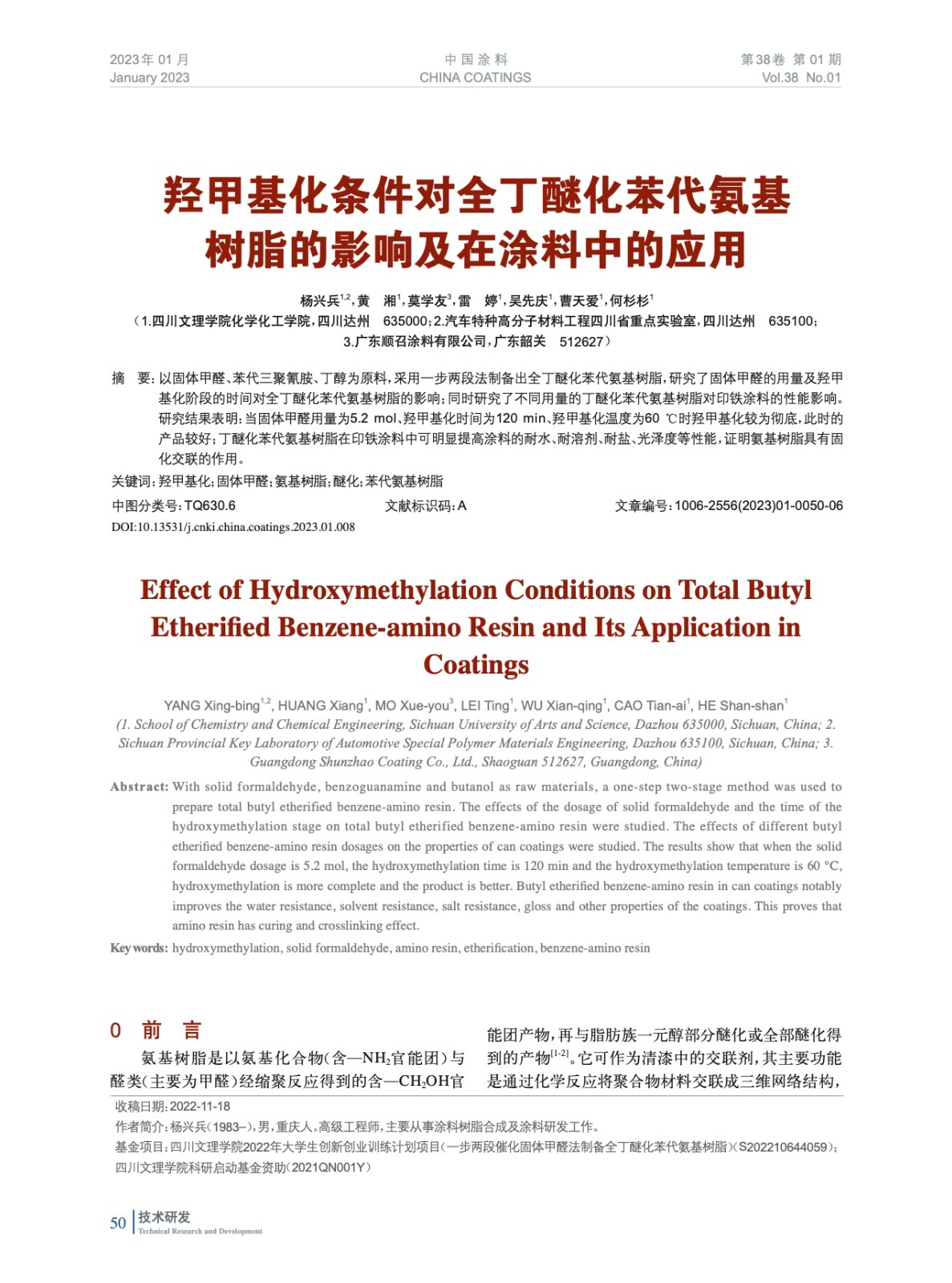 羥甲基化條件對全丁醚化苯代氨基樹脂的影響及在涂料中的應(yīng)用
