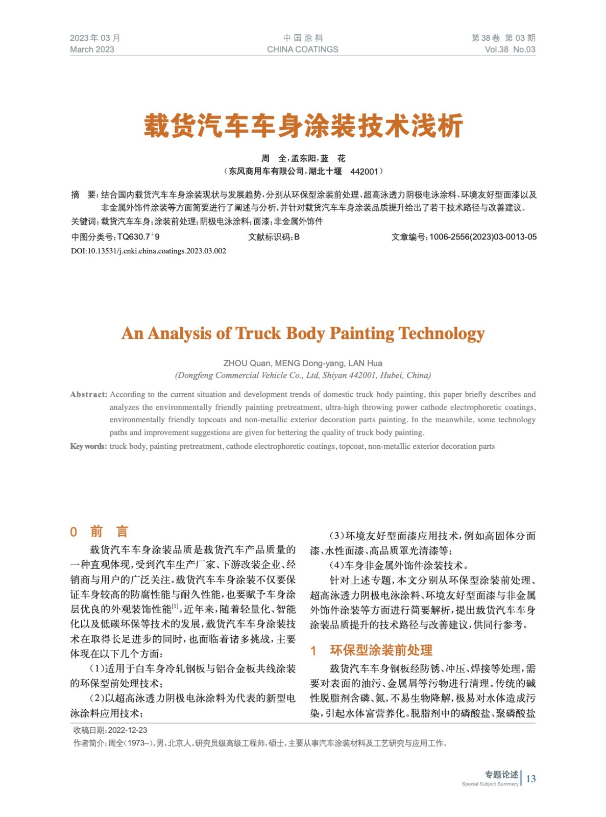摘要:結(jié)合國(guó)內(nèi)載貨汽車(chē)車(chē)身涂裝現(xiàn)狀與發(fā)展趨勢(shì),分別從環(huán)保型涂裝前處理、超高泳透力陰極電泳涂料、環(huán)境友好型面漆以及非金屬外飾件涂裝等方面簡(jiǎn)要進(jìn)行了闡述與分析,并針對(duì)載貨汽車(chē)車(chē)身涂裝品質(zhì)提升給出了若干技術(shù)路徑與改善建議。