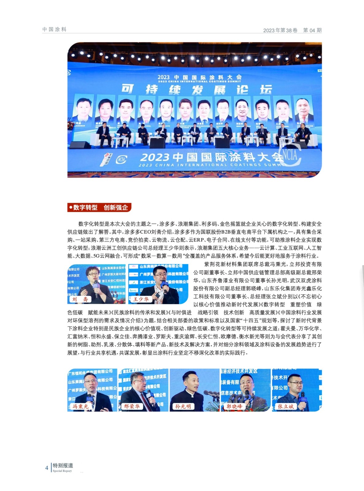 摘要:編者按:春回大地,萬物生輝。4月11-13日,2023中國國際涂料大會如約而至,上下游全產業鏈齊聚泉城,共商涂料行業發展大計。大會以“綠色低碳 數字轉型”為主題,以“團結協作、開放包容、深入交流對話”為宗旨,圍繞國家政策解讀、綠色高質量發展、行業上下游產業鏈協同等議題共同凝聚行業發展共識,推動行業高質量綠色發展,國家部委、地方政府領導、專家學者、涂料上下游產業鏈企業代表約1 400人參加了本次大會。