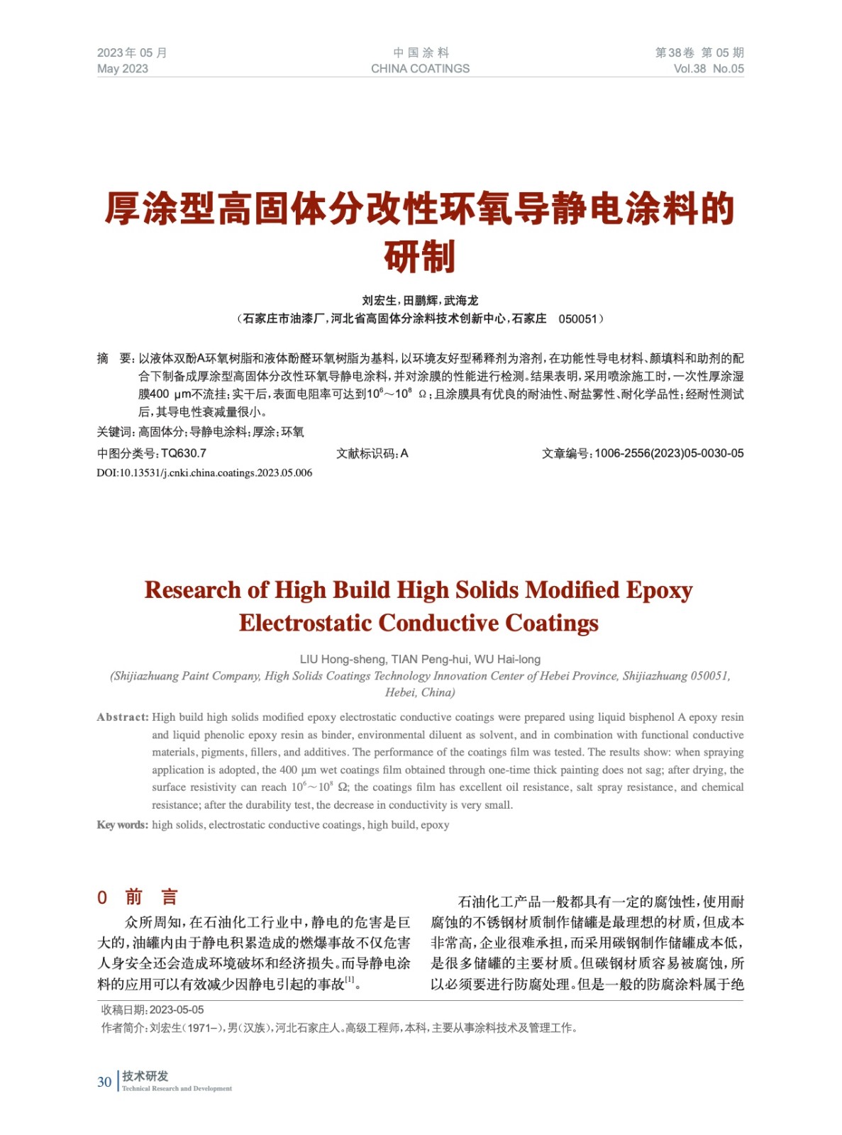 本文系作者@劉宏生,田鵬輝,武海龍 授權中國涂料網發表,并經中國涂料網編輯,未經允許不得轉載,如需轉載請聯系chinacoatingnet@vip.163.com