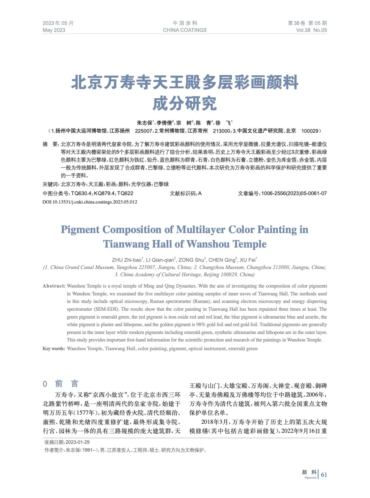 北京萬壽寺天王殿多層彩畫顏料成分研究