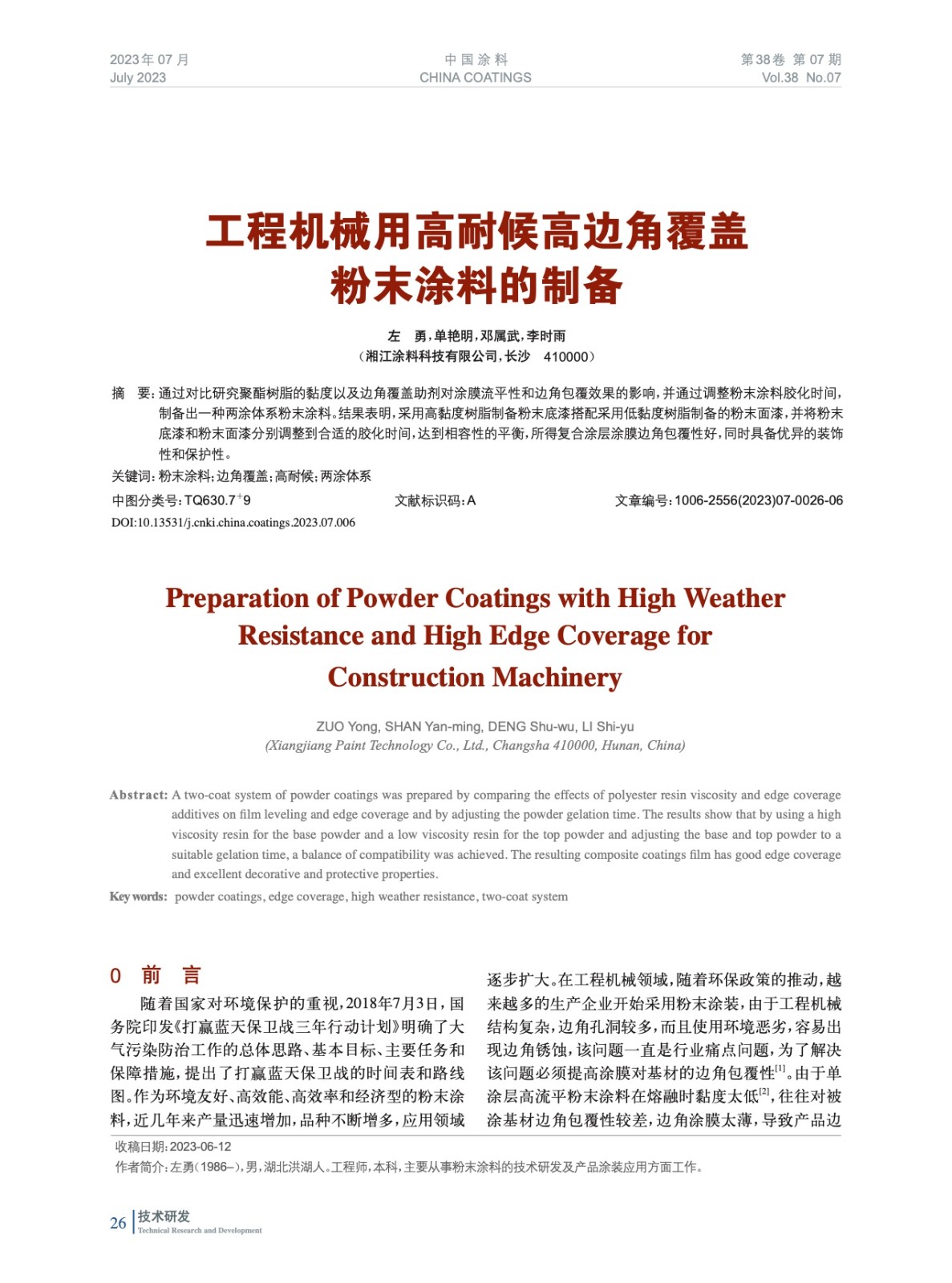 本文系作者@左 勇,單艷明,鄧屬武,李時雨 授權中國涂料網發表,并經中國涂料網編輯,未經允許不得轉載,如需轉載請聯系chinacoatingnet@vip.163.com
