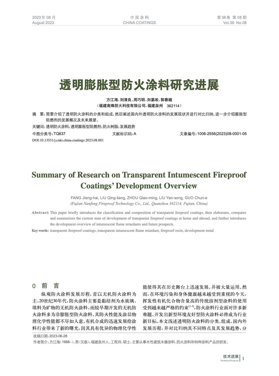 透明膨脹型防火涂料研究進展