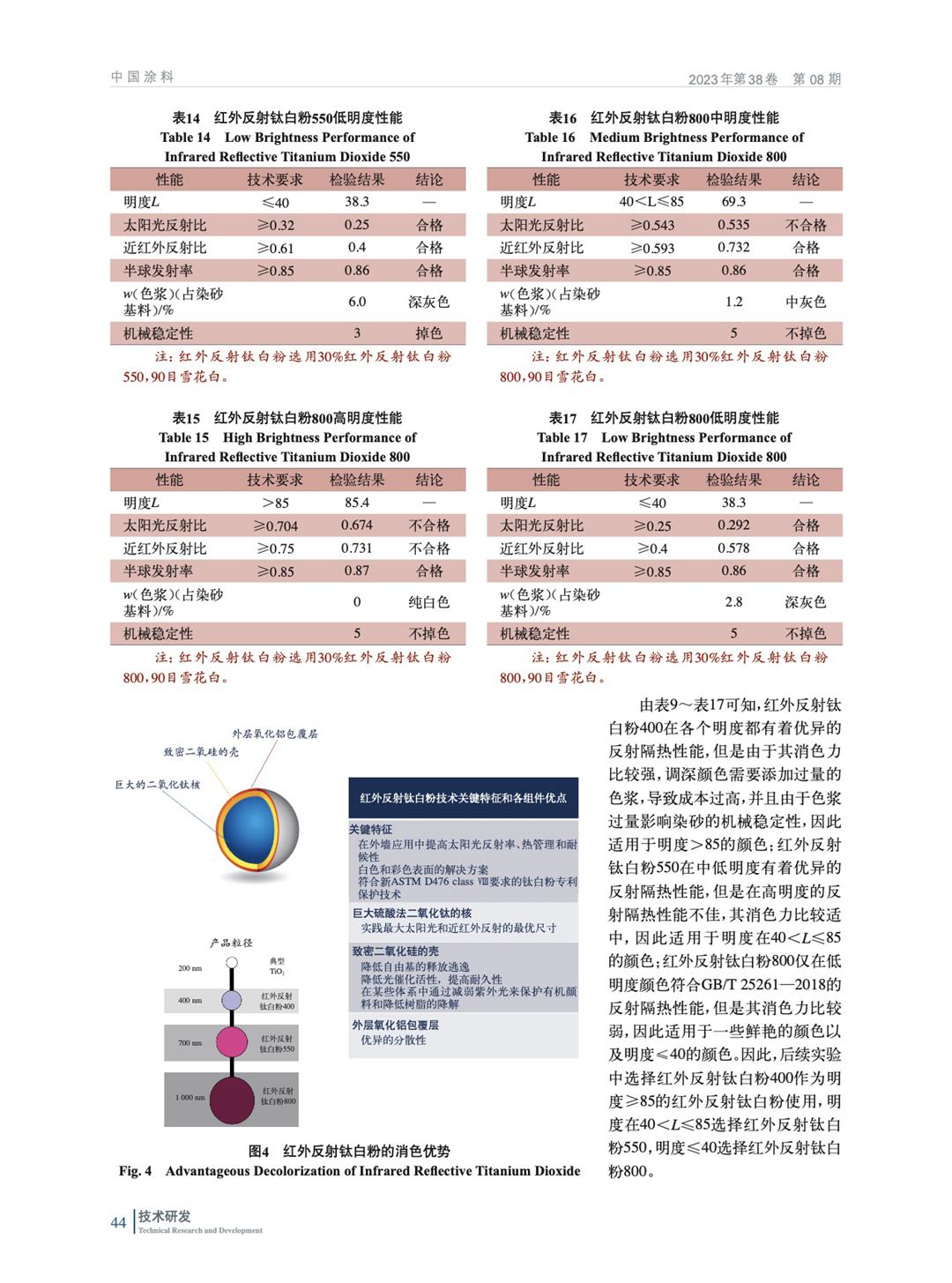 摘要:研究了不同的顏填料種類以及用量對反射隔熱染砂的耐磨性、耐水性、耐溶劑性、耐人工老化性以及反射隔熱性能的影響。結果表明:當紅外反射鈦白粉用量在25%~35%(質量分數,后同),人工染砂乳膠用量在40%~45%,雜化交聯劑用量在0.1%~0.15%,與天然雪花白進行染色處理,其制得的反射隔熱染砂,不僅具有優異的機械穩定性、顏色均勻度,而且具有優異的貯存穩定性、耐水性、耐酸性、耐堿性和耐人工老化性,添加在真石漆中具有優異的反射隔熱性能。