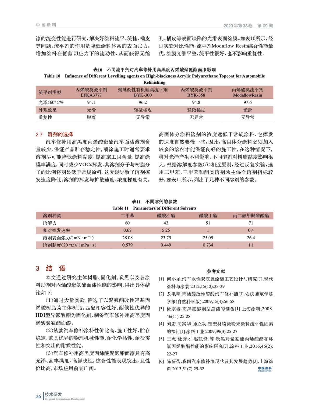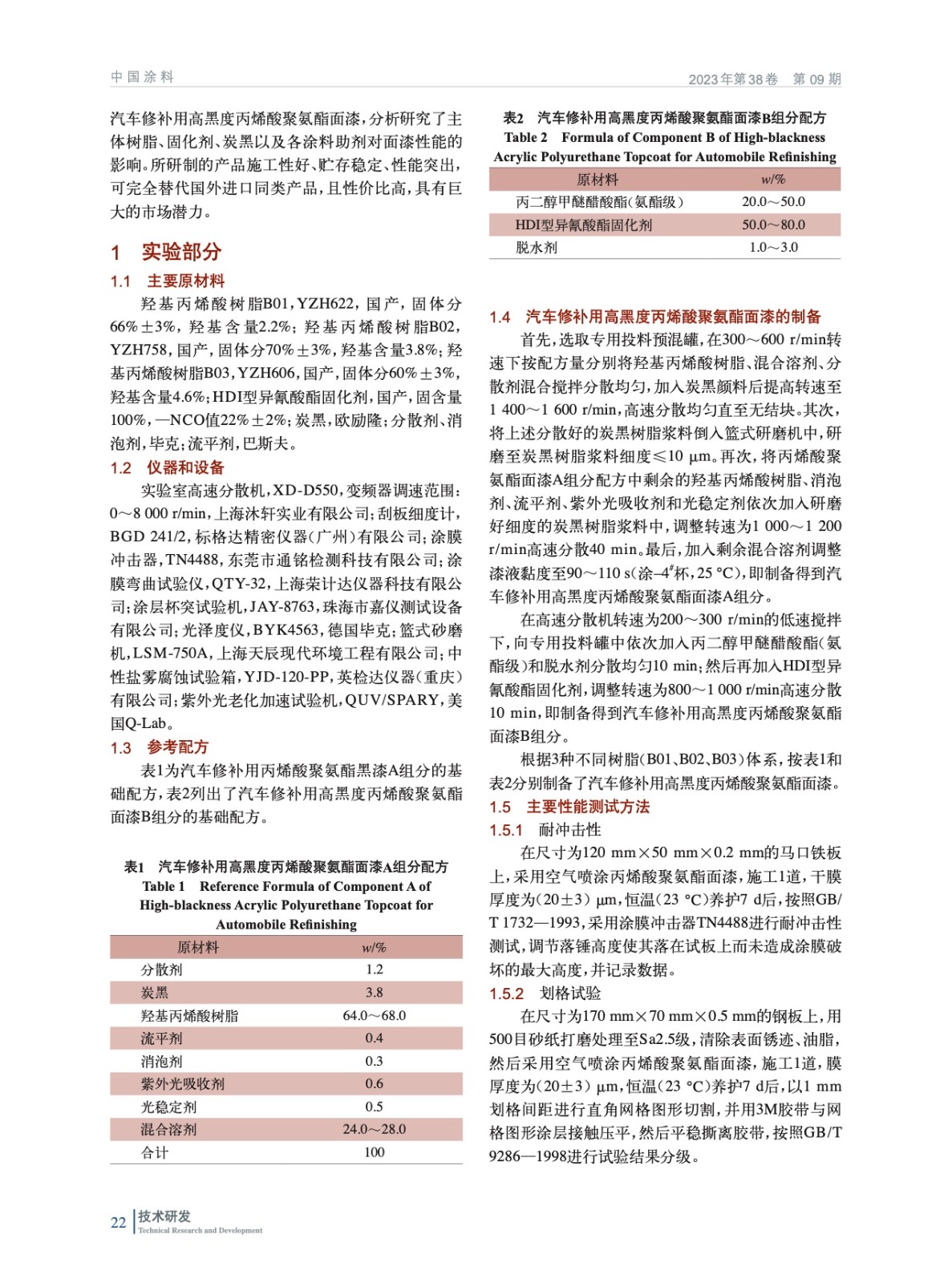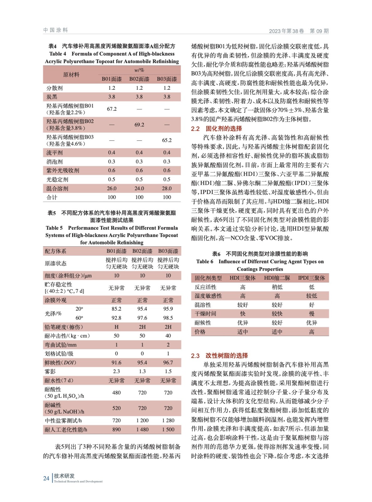 汽車修補用高黑度丙烯酸聚氨酯面漆的制備與性能