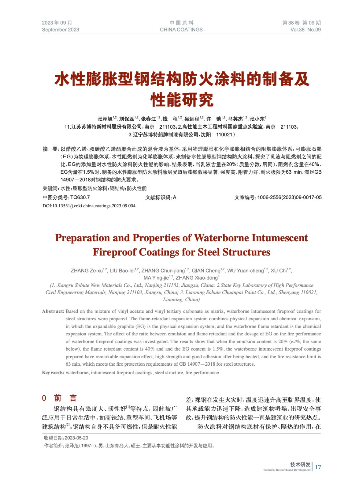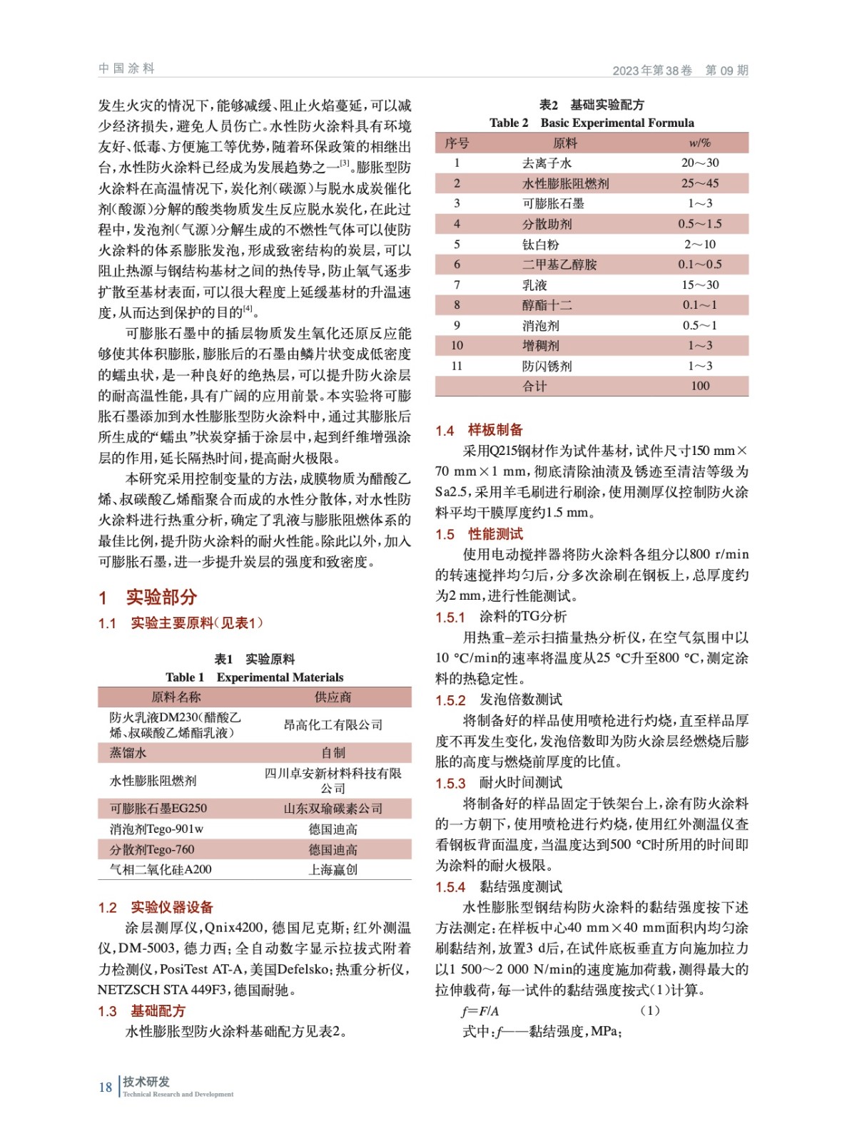 水性膨脹型鋼結(jié)構(gòu)防火涂料的制備及性能研究