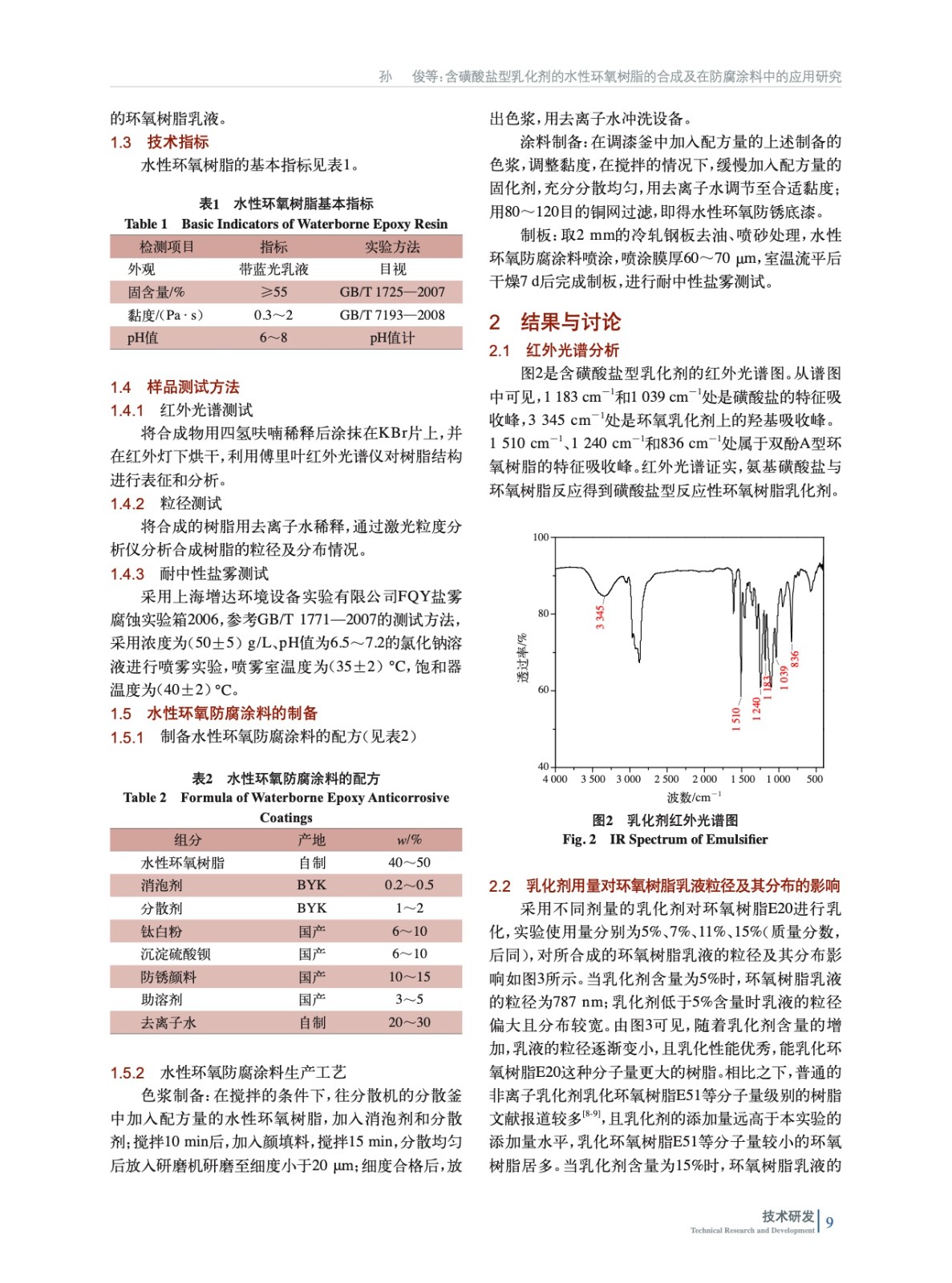 含磺酸鹽型乳化劑的水性環氧樹脂的合成及在防腐涂料中的應用研究