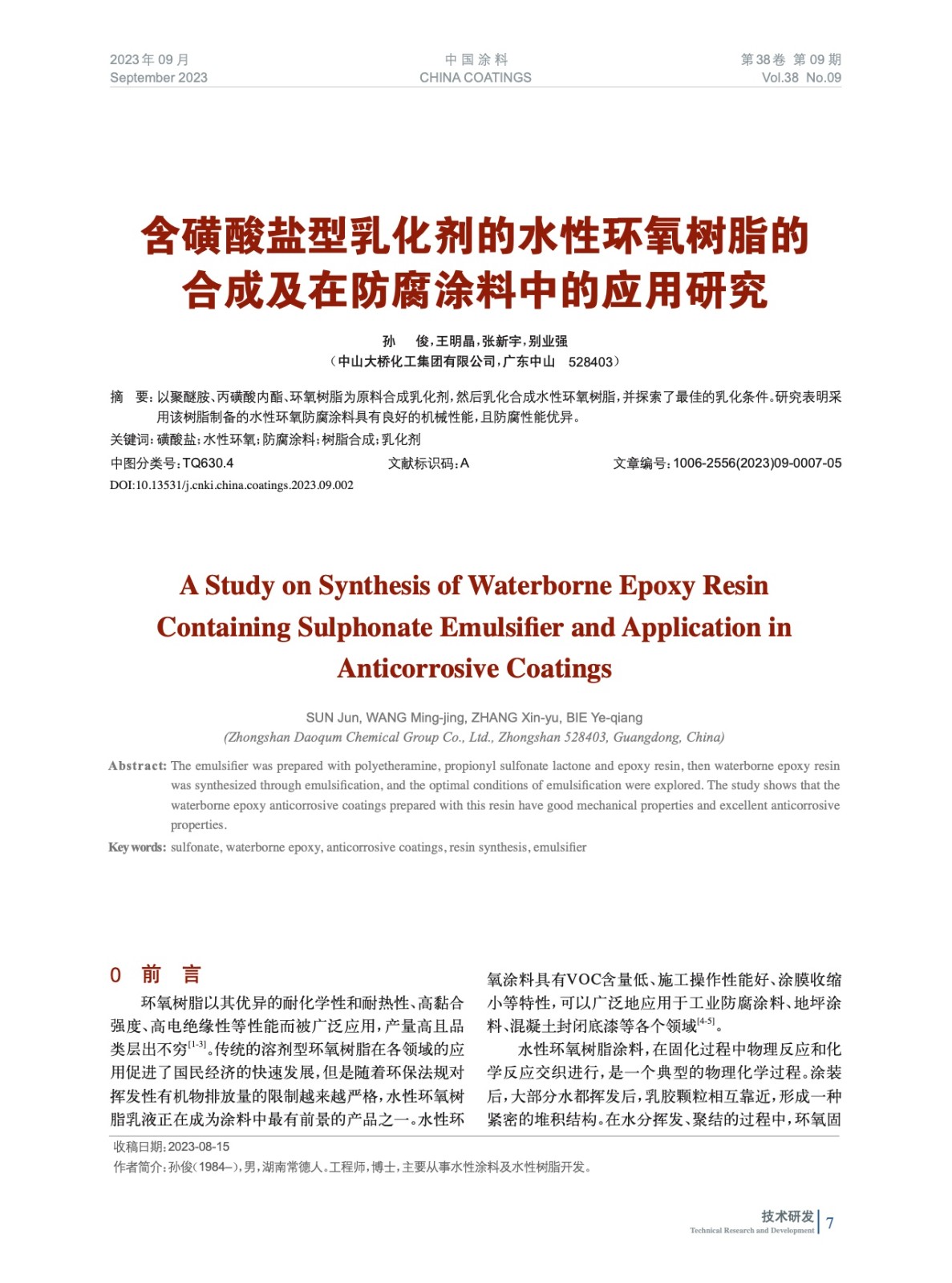 本文系作者@孫 俊,王明晶,張新宇,別業強 授權中國涂料網發表,并經中國涂料網編輯,未經允許不得轉載,如需轉載請聯系chinacoatingnet@vip.163.com