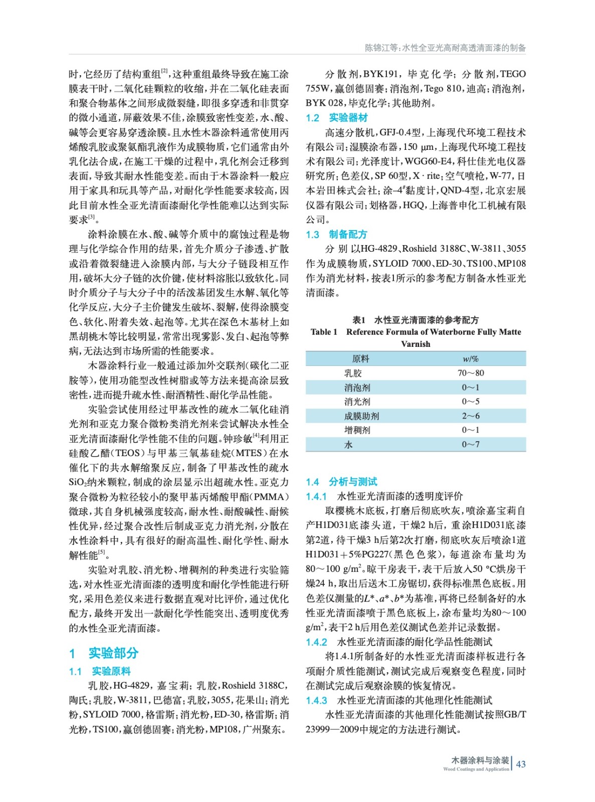 水性全亞光高耐高透清面漆的制備
